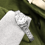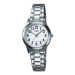 CASIO markasının STANDART koleksiyonuna ait bu zarif saat, yalnızca 42 gr ağırlığıyla bilekte hafif ve konforlu bir kullanım sunar. Kadın kullanıcılar için özel olarak tasarlanan model, analog makine tipiyle çalışmakta ve 3 yıl pil ömrü sağlamaktadır. Klasik saat tarzını yansıtan bu modelde mineral cam kullanılmıştır. Beyaz renkli kadranı, 25 mm kasa çapı, 6,7 mm kasa kalınlığı ve 30 mm kasa yüksekliğiyle sade ve şık bir görünüm sunar. İyon kaplama ile güçlendirilmiş gri renkli oval kasa, estetik görünümün yanı sıra dayanıklılığı da beraberinde getirirken, çelik malzemeden üretilmiş gri kordonu ile zarafeti tamamlar.