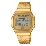 Casio’nun RETRO koleksiyonundan bu unisex dijital saat, nostaljik tasarımı modern detaylarla birleştirerek zamansız bir stil sunuyor. Gri kadranı ve altın sarısı plastik kasası, dikkat çekici bir kontrast oluştururken, köşeli kasa formu saate karakter katıyor. 37,9 mm çapı, 8,2 mm kalınlığı ve 42 mm kasa yüksekliği ile bilekte ideal bir duruş sağlayan model, 60 gram ağırlığıyla hafif ve konforlu bir kullanım vadediyor. Organik camı, günlük kullanıma uygun dayanıklılık sunarken; altın sarısı çelik kordonu tasarımı tamamlayan şık bir detay olarak öne çıkıyor. 2 yıllık pil ömrü ve dijital mekanizması ile pratik kullanım imkânı sunan bu saat, retro severler için mükemmel bir tercih.