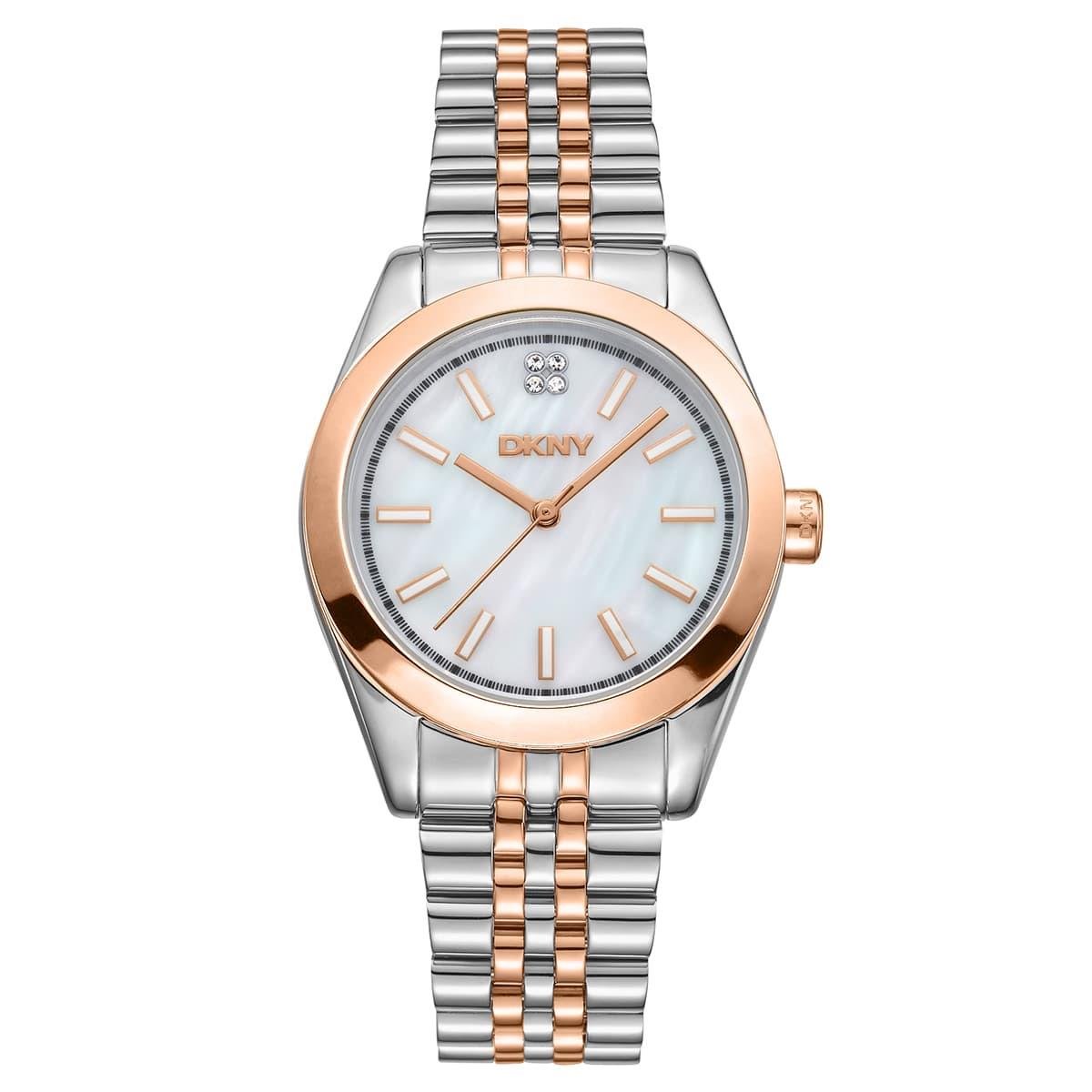 DKNY Nolita Midi Kadın Kol Saati, zarif ve şık tasarımıyla stil sahibi kadınlara hitap ediyor. 32 mm çapındaki metalik gri ve rose gold çelik kasa, 7 mm inceliğiyle bilekte hafif ve konforlu bir his sunuyor. Sedef analog kadran, ışıltılı taş detaylarıyla sofistike bir görünüm sağlarken, mineral cam çizilmelere karşı dayanıklılık sunuyor.