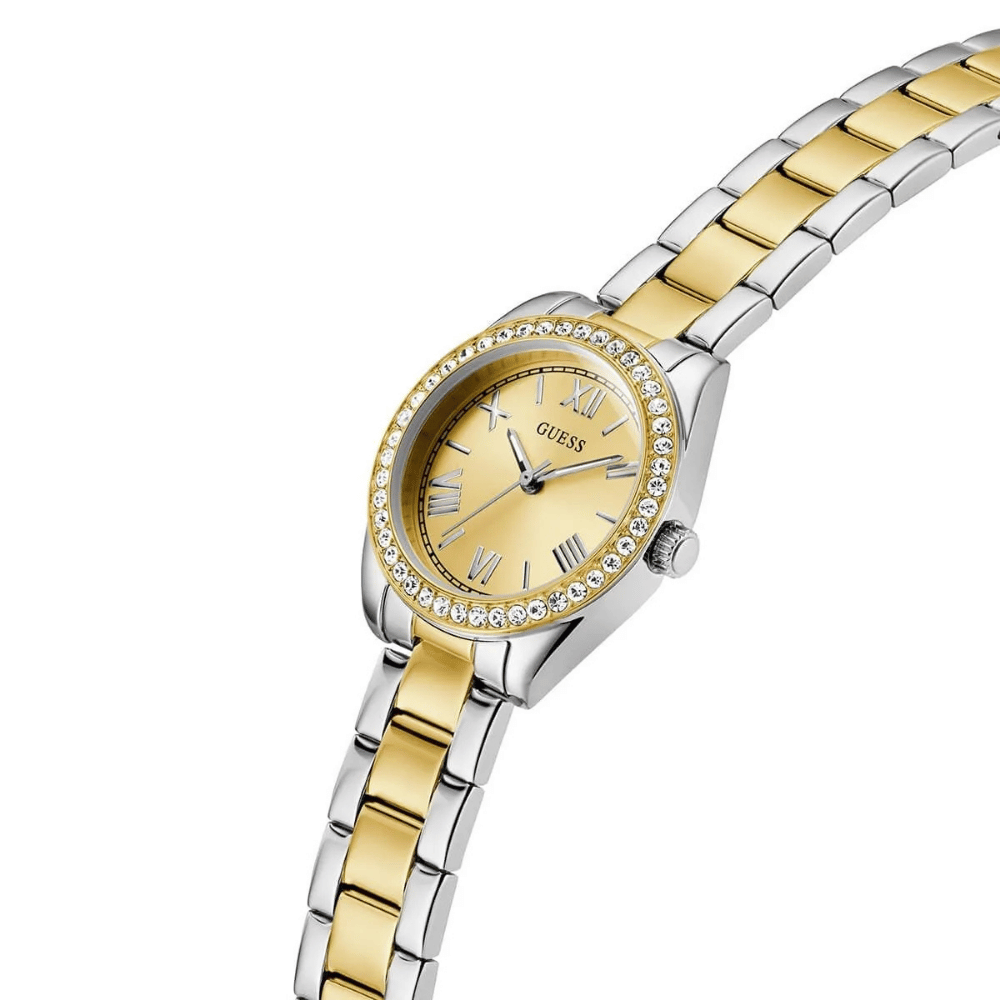Guess Mini Luna Kadın Kol Saati, model Mini Luna, cinsiyet Kadın, mekanizma Quartz, garanti 2 Yıl, marka Guess, kasa çapı 30 mm, kasa kalınlık 8 mm, kasa materyali Çelik, kasa renk Metalik Gri, kasa şekli Yuvarlak, cam özellik Mineral, kasa taşı Var, tarz Klasik Saatler, kadran tipi Analog, kadran taşı Yok, kadran ışık Yok, kadran renk Altın Rengi, kordon özellik Çelik, kordon rengi Altın Rengi/Metalik Gri, kordon uzunluğu 19 cm, kordon genişliği 14 mm, kronometre Yok, su geçirmezlik 3 ATM, alarm Yok, takvim Yok şeklindeki teknik özelliklere sahiptir.