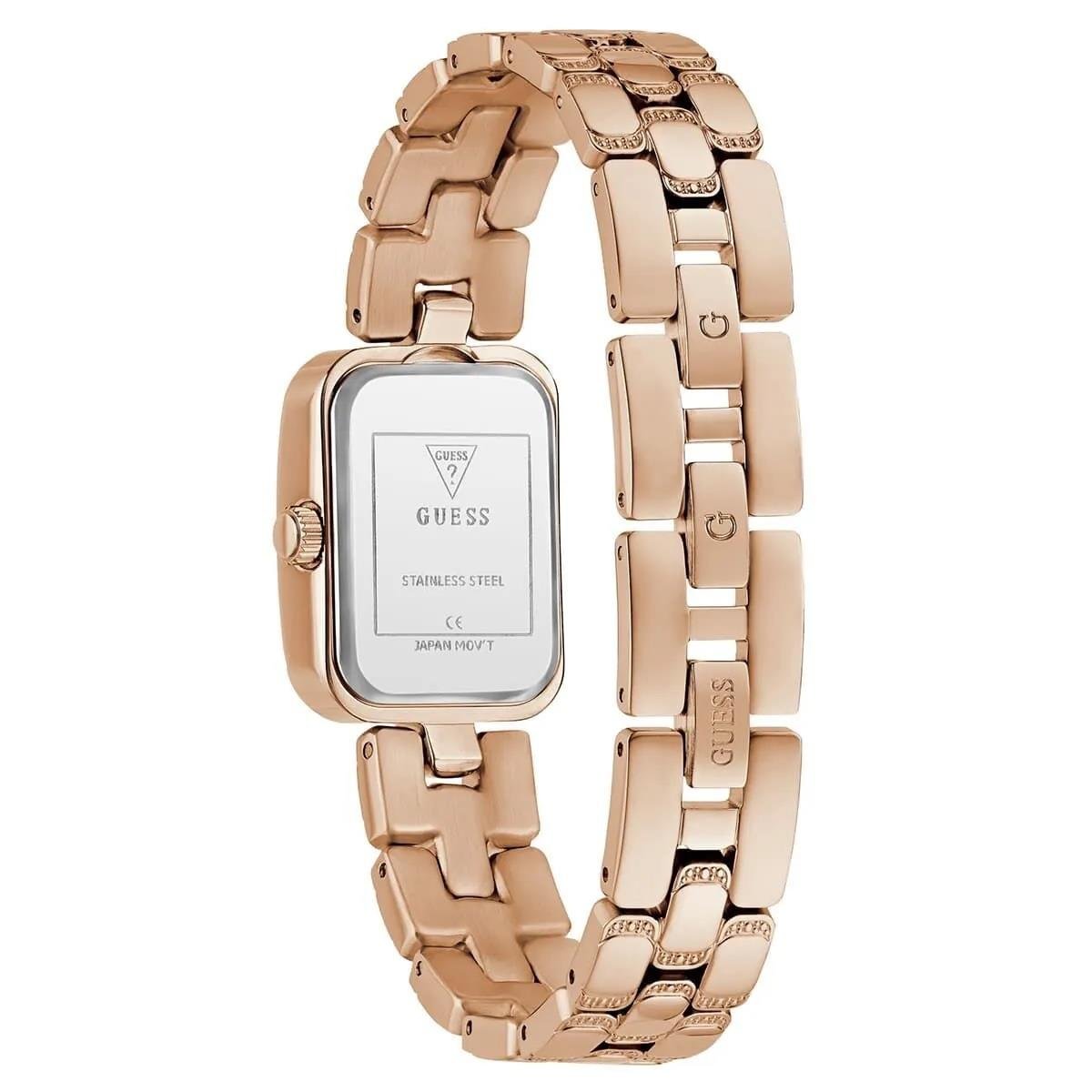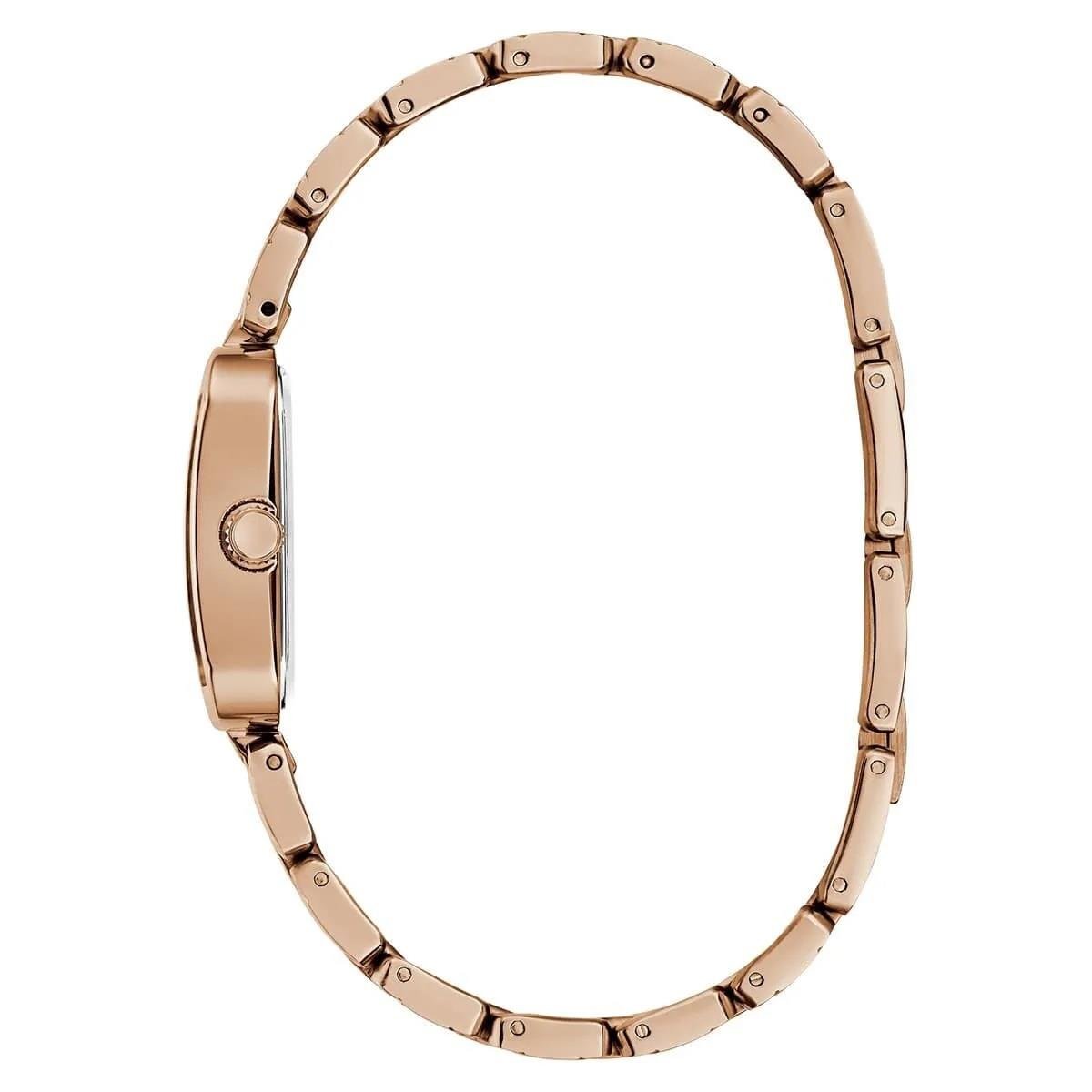 Guess Isla, rose gold renkli zarif dikdörtgen kasa ve gümüş tonu kadran ile her zaman şıklığı yakalamanızı sağlar. Minimalist tasarımı, klasik saatler arasında öne çıkarken, çelik kordonu ile her duruma uyum gösterir. 1 ATM su geçirmezlik özelliği sayesinde, suya karşı dayanıklı olmakla birlikte günlük kullanım için idealdir.