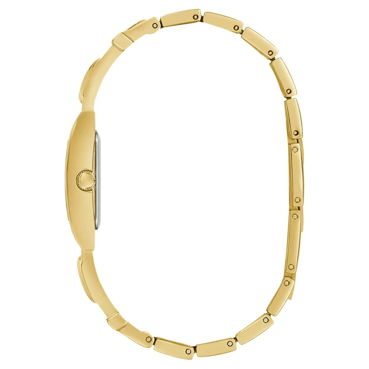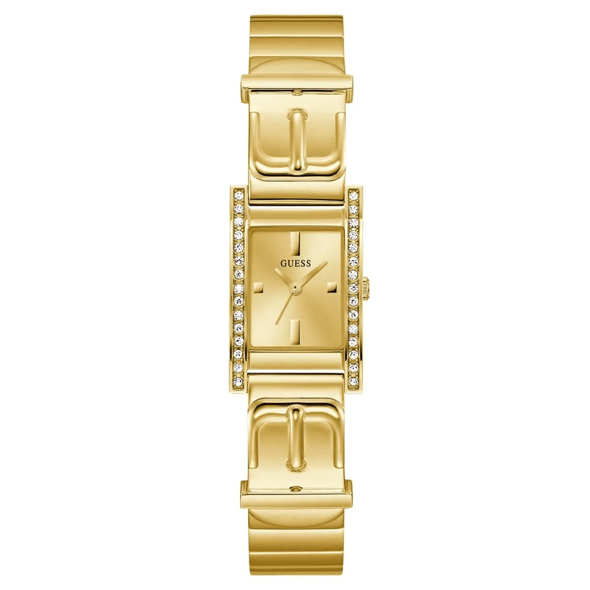 Zarif ve dikkat çekici tasarımıyla öne çıkan Guess Sasha Kadın Saat, minimal boyutları ve ışıltılı detaylarıyla klasik şıklığı modern bir dokunuşla buluşturuyor. Güvenilir Quartz mekanizması ile çalışan bu model, 2 yıl garanti güvencesiyle sunuluyor. Hafifliğiyle konfor sağlayan 66 gr ağırlığındaki saat, sofistike görünüm kazandıran altın rengi çelik kasası (20 mm çap, 8 mm kalınlık) ve üzerindeki taş detayları ile göz kamaştırıyor. Dayanıklı mineral camı uzun ömürlü kullanım sağlarken, zarafeti pekiştiren altın rengi analog kadranı ile bütünleşiyor. Şıklığı tamamlayan altın rengi çelik kordonu (19 cm uzunluk, 15 mm genişlik) bileğe kusursuz uyum sağlayarak lüks bir görünüm sunuyor. Günlük kullanıma uygun olan bu model, 3 ATM su geçirmezlik özelliği sayesinde sıçramalara karşı dayanıklıdır. Estetik ve feminen detaylarıyla bu saat, stiline zarif bir dokunuş katmak isteyen kadınlar için mükemmel bir seçimdir.