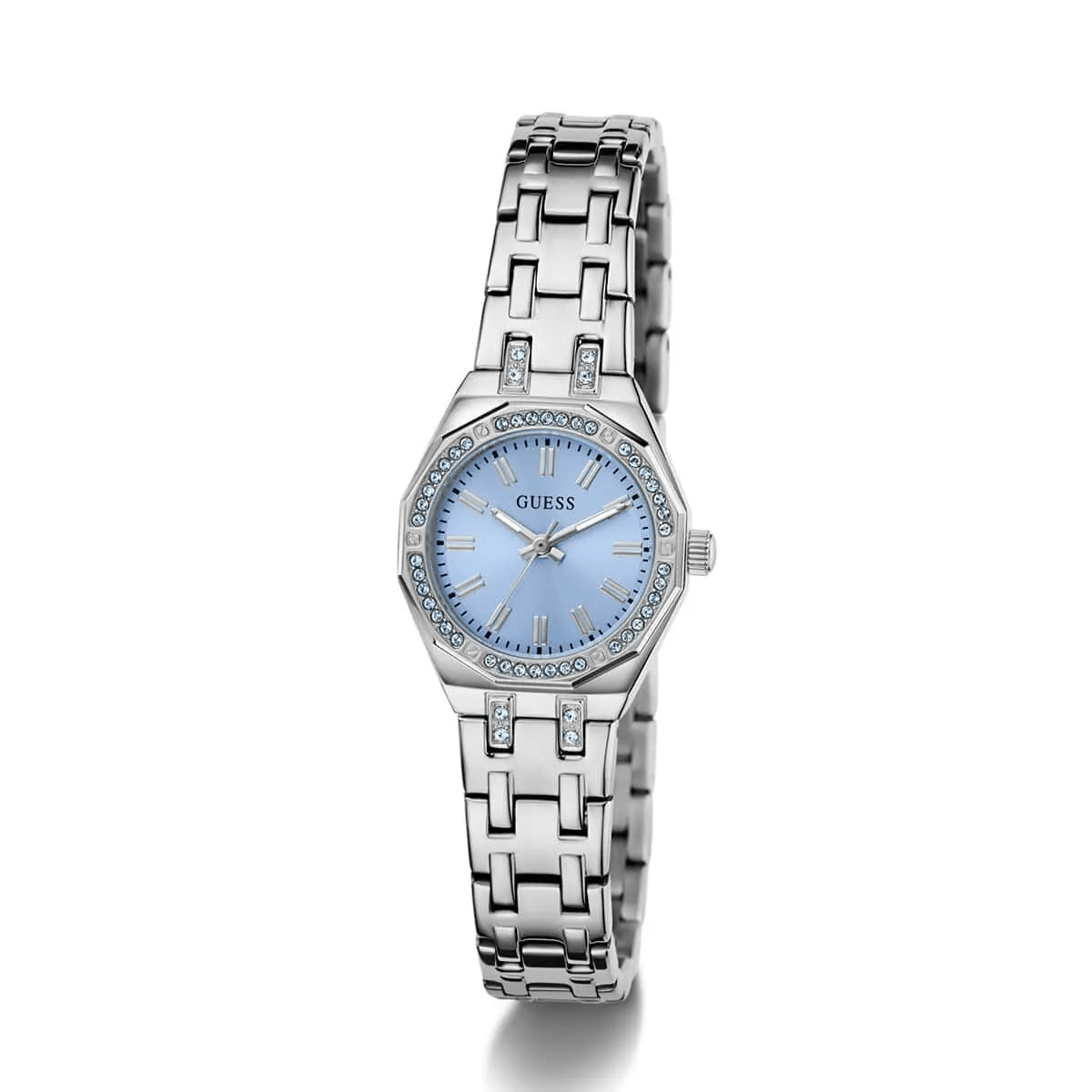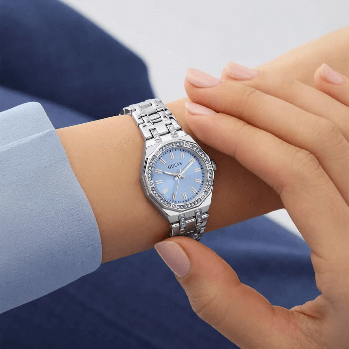 Zarif ve modern tasarımıyla öne çıkan Guess Pixie Kadın Saat, ince detaylarıyla klasik şıklığı yansıtırken günlük ve özel kombinlerinize sofistike bir dokunuş katıyor. Güvenilir Quartz mekanizması ile çalışan bu model, 2 yıl garanti güvencesiyle geliyor. Hafifliğiyle konfor sağlayan 60 gr ağırlığındaki saat, zarif görünüm kazandıran metalik gri çelik kasası (25 mm çap, 8 mm kalınlık) ve üzerindeki taş detayları ile ışıltılı bir stil sunuyor. Dayanıklı mineral camı, uzun ömürlü kullanım sağlarken, dikkat çekici mavi analog kadranı feminen bir zarafet katıyor. İnce tasarımı tamamlayan metalik gri çelik kordonu (19 cm uzunluk, 14 mm genişlik) bileğe zarif bir şekilde uyum sağlıyor. Günlük kullanım için ideal olan bu model, 3 ATM su geçirmezlik özelliği sayesinde sıçramalara karşı dayanıklıdır. Estetik ve zarif detaylarıyla bu saat, minimal şıklığı seven kadınlar için mükemmel bir seçimdir.