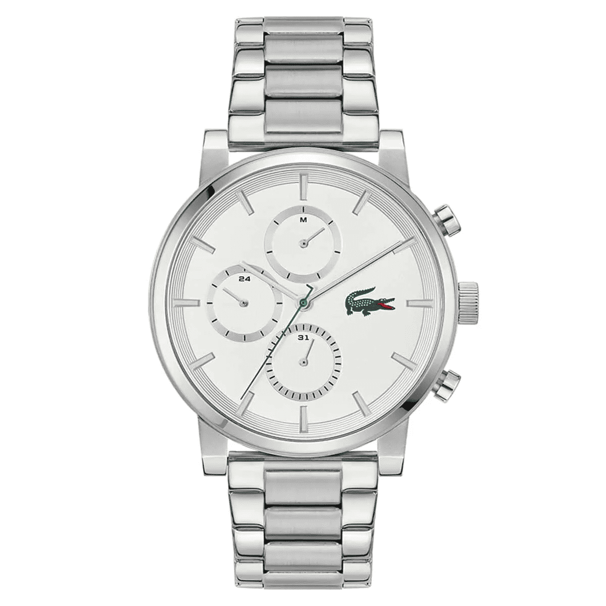 Saatin metalik gri çelik kordonu, 20 cm uzunluk ve 21 mm genişlik ölçüleriyle hem modern hem sağlam bir kullanım deneyimi sunar. Pratiklik sağlayan takvim özelliğine ek olarak, 24 saat göstergesi ve gün fonksiyonu modeli işlevsel hale getirir. 5 ATM su geçirmezlik seviyesi yağmur ve sıçramalara karşı güvenli kullanım imkânı tanır. Lacoste LAC2011452; klasik tasarım, modern işlevsellik ve markanın ikonik stilini bir araya getiren ideal bir erkek saatidir. Ürün 2 yıl garanti kapsamındadır.