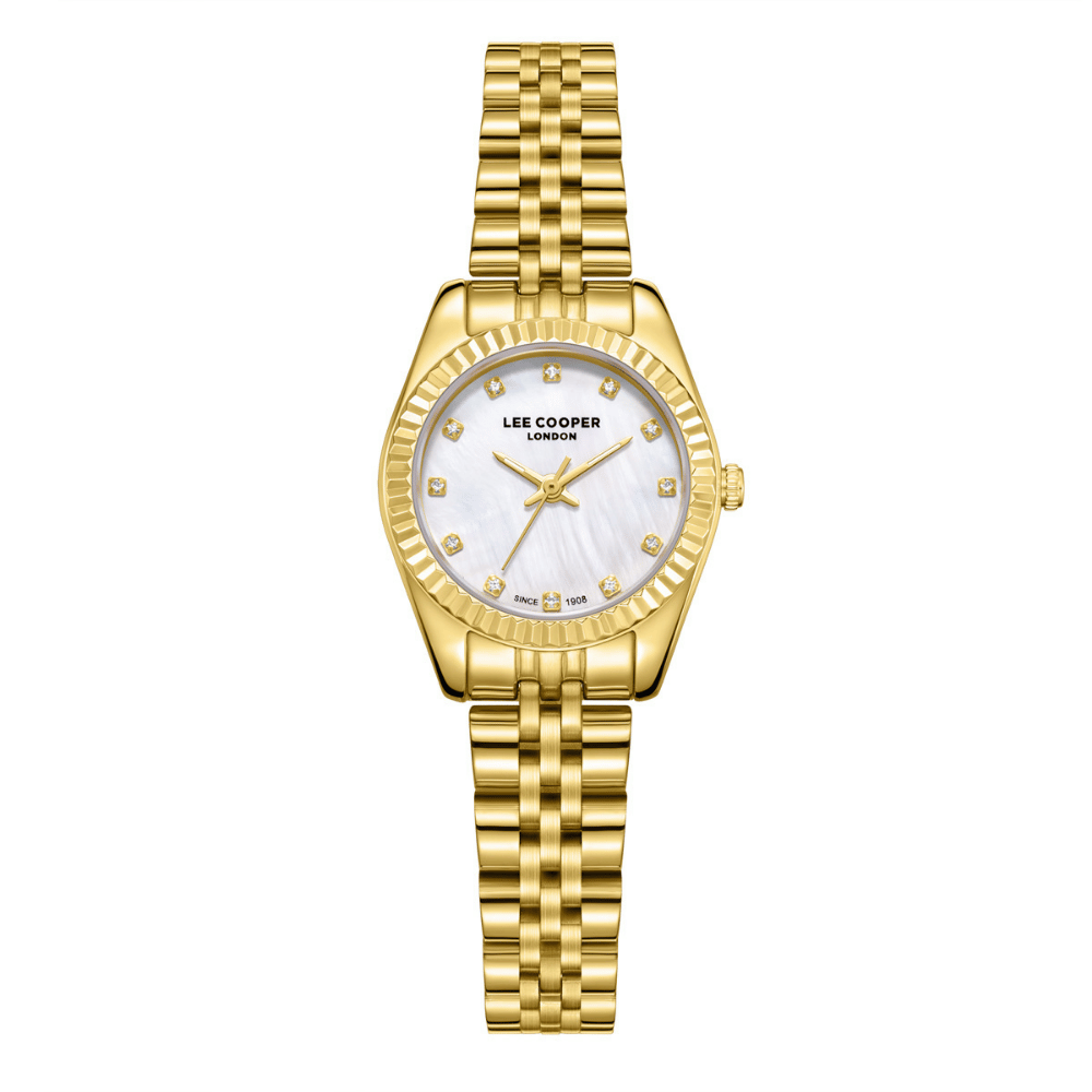 Lee Cooper markasının zarif kadın kol saati, 25 mm kasa çapı ile minimal ve sofistike bir tasarım sunar. Çelik kordonu ve altın rengiyle modern bir görünüm sergileyen model, her stile kolayca uyum sağlar. 2035 mekanizması sayesinde sade bir saat deneyimi sunarken, günlük kullanıma uygun 3 ATM su geçirmezlik özelliği ile pratiklik kazandırır. Mineral cam yapısı çizilmelere karşı dayanıklıdır ve model 2 yıl garanti kapsamında güvenle kullanılabilir.
