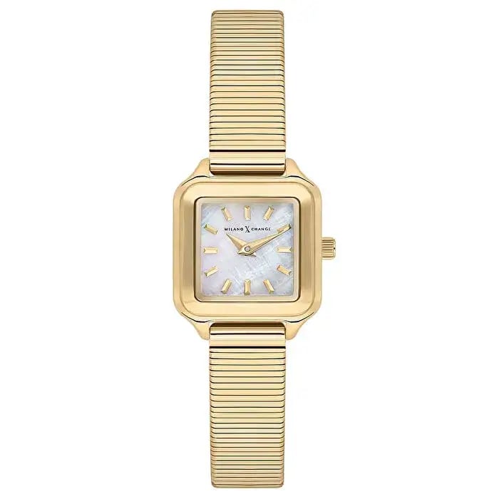 Zarif ve modern tasarımıyla dikkat çeken Milano X Change MXL7107, sedef kadranı ve Altın sarısı kasa ile kordonuyla şık bir görünüm sunuyor. 19.5 mm kasa çapı ve 6 mm kasa kalınlığı, ince ve zarif bir kullanım sağlar. 110.3 gram ağırlığındaki bu saat, hem şıklık hem de rahatlık sunar. 3 ATM su geçirmezlik özelliği, günlük su sıçramalarına karşı dayanıklıdır.