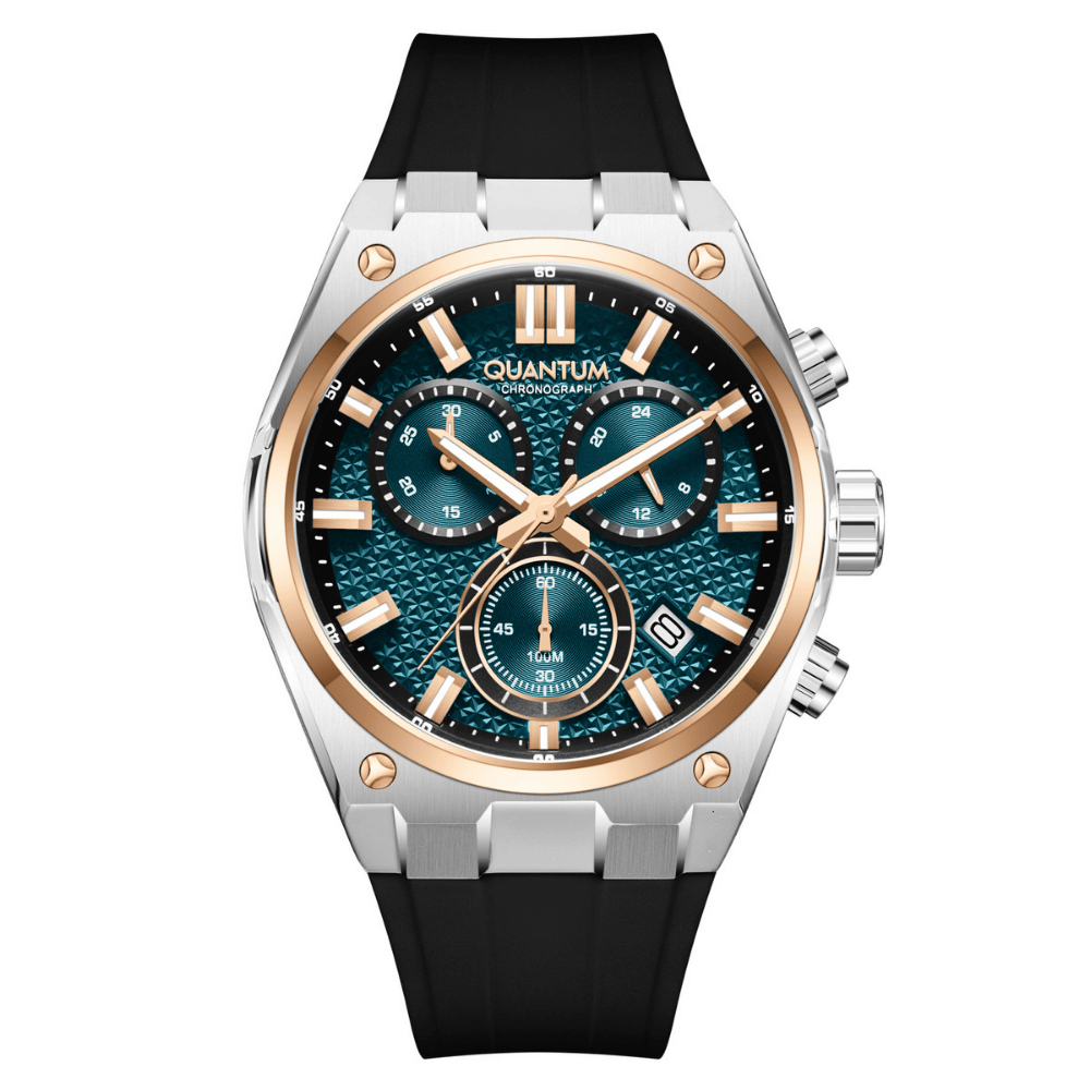 Quantum markasının üstün saatçilik anlayışıyla tasarlanan bu erkek kol saati, şıklık ve dayanıklılığı bir arada sunuyor. 44 mm paslanmaz çelik kasa, sağlam yapısıyla güçlü bir görünüm sunarken, siyah renk slikon kordonu ile modern çizgileri yansıtır. Quantum’un kalite anlayışını yansıtan modelde kullanılan Anti-Reflective Crystal cam, çizilmelere karşı üst düzey dayanıklılık sağlar. Analog ekran tipi klasik ve net bir okuma sunarken, Quartz mekanizma sayesinde yüksek hassasiyetle çalışır. 10 ATM su geçirmezlik, günlük kullanım ve su temaslarına karşı yeterli koruma sağlarken; kronometre ve takvim fonksiyonları aktif yaşamı destekleyen pratik özellikler sunar. Quantum kalitesi, bu modeli sadece bir saat değil, aynı zamanda zamana karşı sağlam bir duruş haline getiriyor.