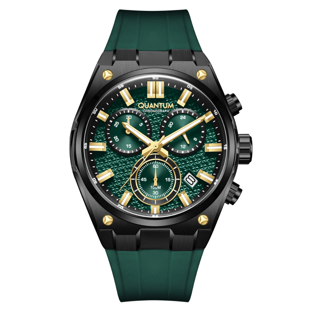 Quantum markasının üstün saatçilik anlayışıyla tasarlanan bu erkek kol saati, şıklık ve dayanıklılığı bir arada sunuyor. 44 mm paslanmaz çelik kasa, sağlam yapısıyla güçlü bir görünüm sunarken, yeşil renk slikon kordonu ile modern çizgileri yansıtır. Quantum’un kalite anlayışını yansıtan modelde kullanılan Anti-Reflective Crystal cam, çizilmelere karşı üst düzey dayanıklılık sağlar. Analog ekran tipi klasik ve net bir okuma sunarken, Quartz mekanizma sayesinde yüksek hassasiyetle çalışır. 10 ATM su geçirmezlik, günlük kullanım ve su temaslarına karşı yeterli koruma sağlarken; kronometre ve takvim fonksiyonları aktif yaşamı destekleyen pratik özellikler sunar. Quantum kalitesi, bu modeli sadece bir saat değil, aynı zamanda zamana karşı sağlam bir duruş haline getiriyor.