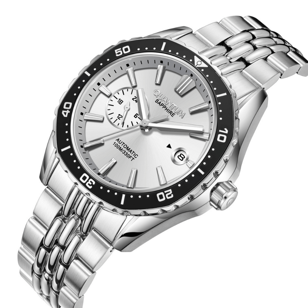 Zarif beyaz kadranı ve dikkat çekici tasarımıyla öne çıkan Quantum otomatik kol saati, modern stilin güçlü ve sade bir yansımasıdır. 44 mm kasa çapı ile bilekte dengeli ve iddialı bir duruş sunan bu model, günlük kullanımda hem şıklığı hem de sağlamlığı bir arada sunar. Paslanmaz çelik kasa ve gri renkli çelik bilezik, saatin sofistike ve zamansız çizgilerini tamamlar. Safir cam, çizilmelere karşı yüksek dayanıklılık sağlarken, yansıma önleyici kaplama ile her açıdan net bir görüş imkânı sunar. Beyaz kadranı, yalın ve şık detaylarıyla dikkat çekerken, sade tasarımıyla hem klasik hem de modern giyim stilleriyle uyum sağlar. Otomatik mekanizması, kol hareketiyle kendini sararak pile ihtiyaç duymadan enerji üretir. 10 ATM (100 metre) su geçirmezlik seviyesi, günlük su temaslarına ve yüzmeye karşı güvenli kullanım sunar. Şıklık, dayanıklılık ve teknik üstünlüğü bir araya getiren Quantum otomatik saat, stil sahibi kullanıcılar için ideal bir tercihtir.