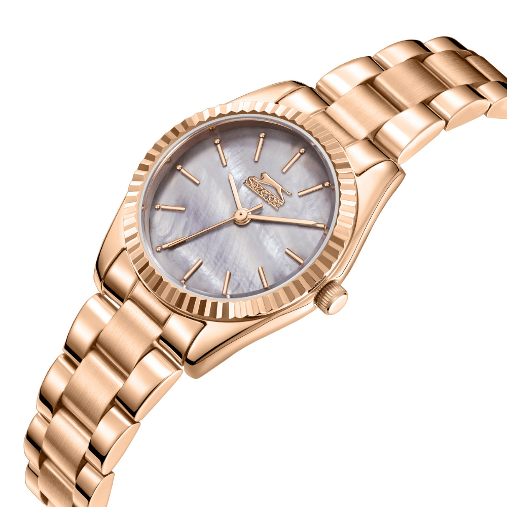 Slazenger markasının zarif detaylarla tasarlanmış bu kadın kol saati,28 mm çapında paslanmaz çelik kasa ile hem dayanıklılığı hem de estetik görünümü bir arada sunar.Rose renkli paslanmaz çelik kordon,bilekte zarafetle parlayarak her stile sofistike bir dokunuş kazandırır.Rose kasa rengi,saatin modern duruşunu güçlendirirken,göz alıcı uyumuyla dikkat çeker.Füme kadran rengi,sade ve zarif bir ifade sunarken,ışıltılı tonuyla zaman kavramına şıklık katar.Mineral cam,günlük kullanıma uygun dayanıklılık sağlayarak çizilmelere karşı koruma sunar.Analog ekran tipi,klasik tarzı benimseyen kullanıcılar için ideal bir görünüm sağlarken,Quartz mekanizma,zamanı daima doğru ve güvenilir bir şekilde sunar.5 ATM su geçirmezlik seviyesi,el yıkama,yağmur gibi gündelik su temaslarına karşı koruma sağlar.Minimal tasarımı,göz alıcı renk geçişleri ve zamansız çizgileriyle öne çıkan bu model,hem günlük kombinlerinize uyum sağlar hem de özel anlarınızda zarif bir tamamlayıcı olur.Şıklığı ve fonksiyonelliği bir arada sunan bu saat,detaylara önem veren stil sahibi kadınlar için mükemmel bir seçimdir.