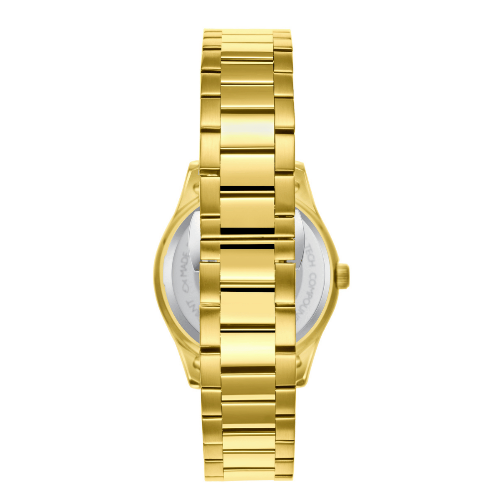 Slazenger markasının zarif detaylarla tasarlanmış bu kadın kol saati,32 mm çapında paslanmaz çelik kasa ile hem dayanıklılığı hem de estetik görünümü bir arada sunar.Altın renkli paslanmaz çelik kordon,bilekte zarafetle parlayarak her stile sofistike bir dokunuş kazandırır.Altın kasa rengi,saatin modern duruşunu güçlendirirken,göz alıcı uyumuyla dikkat çeker.Beyaz kadran rengi,sade ve zarif bir ifade sunarken,ışıltılı tonuyla zaman kavramına şıklık katar.Mineral cam,günlük kullanıma uygun dayanıklılık sağlayarak çizilmelere karşı koruma sunar.Analog ekran tipi,klasik tarzı benimseyen kullanıcılar için ideal bir görünüm sağlarken,Quartz mekanizma,zamanı daima doğru ve güvenilir bir şekilde sunar.5 ATM su geçirmezlik seviyesi,el yıkama,yağmur gibi gündelik su temaslarına karşı koruma sağlar.Minimal tasarımı,göz alıcı renk geçişleri ve zamansız çizgileriyle öne çıkan bu model,hem günlük kombinlerinize uyum sağlar hem de özel anlarınızda zarif bir tamamlayıcı olur.Şıklığı ve fonksiyonelliği bir arada sunan bu saat,detaylara önem veren stil sahibi kadınlar için mükemmel bir seçimdir.