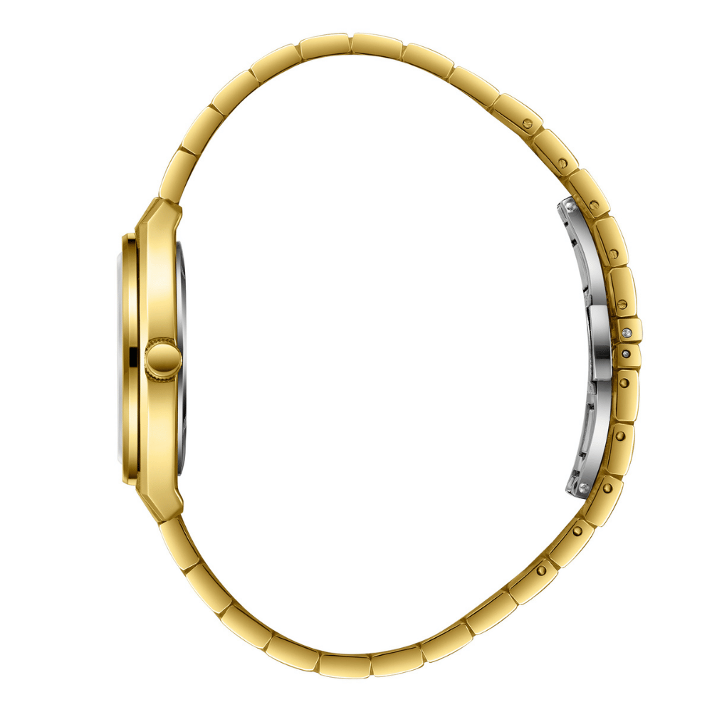 Slazenger markasının zarif detaylarla tasarlanmış bu kadın kol saati,32 mm çapında paslanmaz çelik kasa ile hem dayanıklılığı hem de estetik görünümü bir arada sunar.Altın renkli paslanmaz çelik kordon,bilekte zarafetle parlayarak her stile sofistike bir dokunuş kazandırır.Altın kasa rengi,saatin modern duruşunu güçlendirirken,göz alıcı uyumuyla dikkat çeker.Gümüş kadran rengi,sade ve zarif bir ifade sunarken,ışıltılı tonuyla zaman kavramına şıklık katar.Mineral cam,günlük kullanıma uygun dayanıklılık sağlayarak çizilmelere karşı koruma sunar.Analog ekran tipi,klasik tarzı benimseyen kullanıcılar için ideal bir görünüm sağlarken,Quartz mekanizma,zamanı daima doğru ve güvenilir bir şekilde sunar.5 ATM su geçirmezlik seviyesi,el yıkama,yağmur gibi gündelik su temaslarına karşı koruma sağlar.Minimal tasarımı,göz alıcı renk geçişleri ve zamansız çizgileriyle öne çıkan bu model,hem günlük kombinlerinize uyum sağlar hem de özel anlarınızda zarif bir tamamlayıcı olur.Şıklığı ve fonksiyonelliği bir arada sunan bu saat,detaylara önem veren stil sahibi kadınlar için mükemmel bir seçimdir.