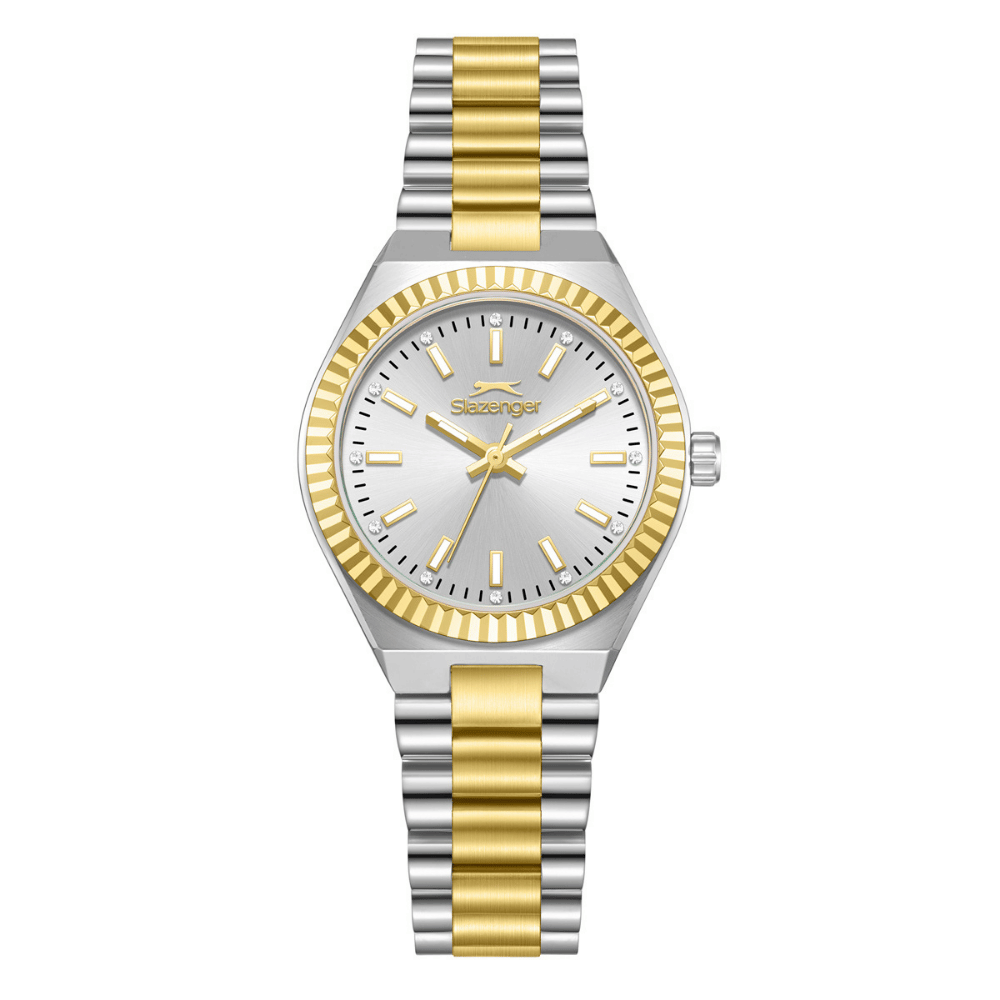 Slazenger markasının zarif detaylarla tasarlanmış bu kadın kol saati,34 mm çapında paslanmaz çelik kasa ile hem dayanıklılığı hem de estetik görünümü bir arada sunar.Metalik gri-altın renkli paslanmaz çelik kordon,bilekte zarafetle parlayarak her stile sofistike bir dokunuş kazandırır.metalik gri-altın kasa rengi,saatin modern duruşunu güçlendirirken,göz alıcı uyumuyla dikkat çeker.Gümüş kadran rengi,sade ve zarif bir ifade sunarken,ışıltılı tonuyla zaman kavramına şıklık katar.Mineral cam,günlük kullanıma uygun dayanıklılık sağlayarak çizilmelere karşı koruma sunar.Analog ekran tipi,klasik tarzı benimseyen kullanıcılar için ideal bir görünüm sağlarken,Quartz mekanizma,zamanı daima doğru ve güvenilir bir şekilde sunar.5 ATM su geçirmezlik seviyesi,el yıkama,yağmur gibi gündelik su temaslarına karşı koruma sağlar.Minimal tasarımı,göz alıcı renk geçişleri ve zamansız çizgileriyle öne çıkan bu model,hem günlük kombinlerinize uyum sağlar hem de özel anlarınızda zarif bir tamamlayıcı olur.Şıklığı ve fonksiyonelliği bir arada sunan bu saat,detaylara önem veren stil sahibi kadınlar için mükemmel bir seçimdir.