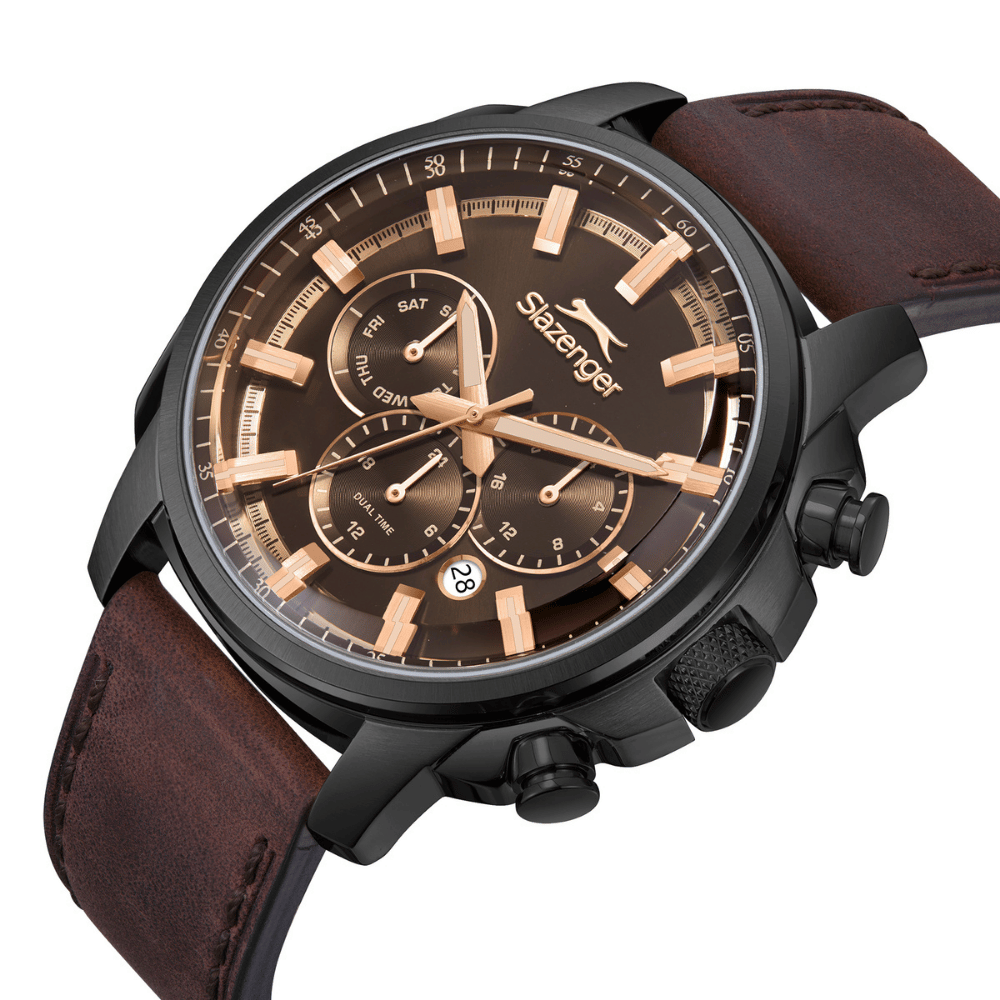 Zamansız bir stil ve güçlü bir duruş arayan erkekler için tasarlanan Slazenger Erkek Kol Saati,hem estetik hem de fonksiyonel özellikleriyle öne çıkıyor.44 mm çapındaki yuvarlak çelik kasa,gümüş tonuyla modern ve klasik tarzı mükemmel bir şekilde birleştiriyor.12 mm kalınlığa sahip kasa,bilekte şık ve dengeli bir görünüm sunuyor.Siyah analog kadran,güçlü kontrastıyla okunabilirliği artırırken;takvim ve 24 saat göstergesi gibi fonksiyonlarıyla da günlük yaşamda pratiklik sağlıyor.Quartz (pilli) mekanizma,zamanın her anında hassasiyet sunarken;mineral cam,çizilmelere karşı dayanıklılık sağlayarak uzun ömürlü kullanım imkanı veriyor.Kahverengi renkli deri kordon,dayanıklılığı şıklıkla buluşturuyor.10 ATM su geçirmezlik seviyesi sayesinde yağmurlu günlerde ya da el yıkama gibi günlük temaslarda gönül rahatlığıyla kullanılabilir.2 yıl garanti ile gelen bu model,Slazenger kalitesini her detayında hissettiren özel bir aksesuardır.Tarzına değer veren erkekler için vazgeçilmez bir seçim.