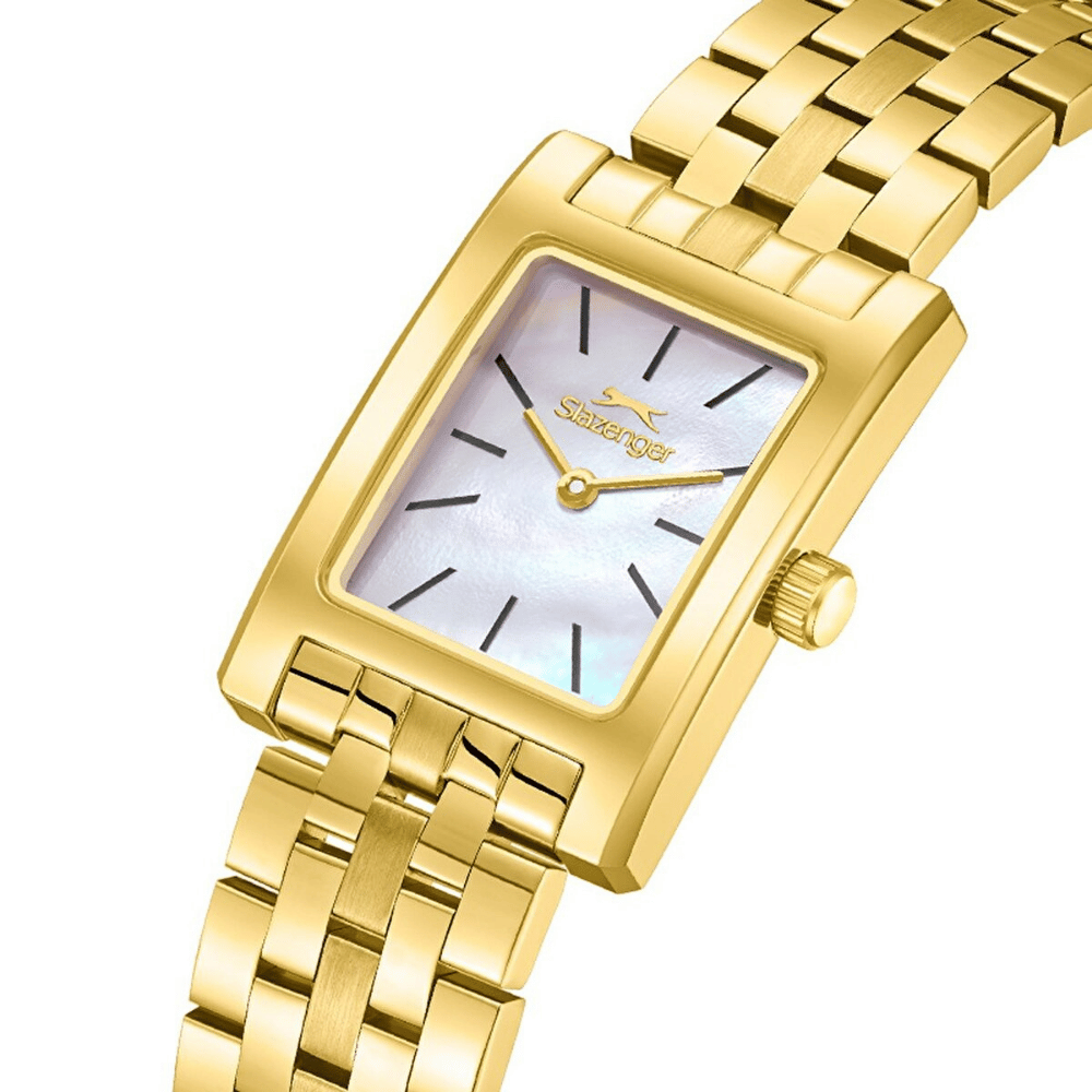 Slazenger markasının zarif detaylarla tasarlanmış bu kadın kol saati,34 mm çapında paslanmaz çelik kasa ile hem dayanıklılığı hem de estetik görünümü bir arada sunar.Altın renkli paslanmaz çelik kordon,bilekte zarafetle parlayarak her stile sofistike bir dokunuş kazandırır.Altın kasa rengi,saatin modern duruşunu güçlendirirken,göz alıcı uyumuyla dikkat çeker.Sedef kadran rengi,sade ve zarif bir ifade sunarken,ışıltılı tonuyla zaman kavramına şıklık katar.Mineral cam,günlük kullanıma uygun dayanıklılık sağlayarak çizilmelere karşı koruma sunar.Analog ekran tipi,klasik tarzı benimseyen kullanıcılar için ideal bir görünüm sağlarken,Quartz mekanizma,zamanı daima doğru ve güvenilir bir şekilde sunar.5 ATM su geçirmezlik seviyesi,el yıkama,yağmur gibi gündelik su temaslarına karşı koruma sağlar.Minimal tasarımı,göz alıcı renk geçişleri ve zamansız çizgileriyle öne çıkan bu model,hem günlük kombinlerinize uyum sağlar hem de özel anlarınızda zarif bir tamamlayıcı olur.Şıklığı ve fonksiyonelliği bir arada sunan bu saat,detaylara önem veren stil sahibi kadınlar için mükemmel bir seçimdir.