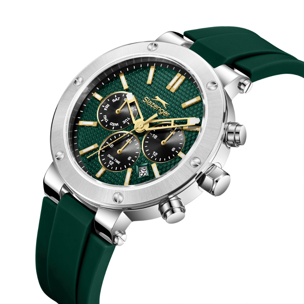 Zamansız bir stil ve güçlü bir duruş arayan erkekler için tasarlanan Slazenger Erkek Kol Saati,hem estetik hem de fonksiyonel özellikleriyle öne çıkıyor.42 mm çapındaki yuvarlak çelik kasa,gümüş tonuyla modern ve klasik tarzı mükemmel bir şekilde birleştiriyor.12 mm kalınlığa sahip kasa,bilekte şık ve dengeli bir görünüm sunuyor.Yeşil analog kadran,güçlü kontrastıyla okunabilirliği artırırken;takvim ve 24 saat göstergesi gibi fonksiyonlarıyla da günlük yaşamda pratiklik sağlıyor.Quartz (pilli) mekanizma,zamanın her anında hassasiyet sunarken;mineral cam,çizilmelere karşı dayanıklılık sağlayarak uzun ömürlü kullanım imkanı veriyor.Yeşil renkli slikon kordon,dayanıklılığı şıklıkla buluşturuyor.10 ATM su geçirmezlik seviyesi sayesinde yağmurlu günlerde ya da el yıkama gibi günlük temaslarda gönül rahatlığıyla kullanılabilir.2 yıl garanti ile gelen bu model,Slazenger kalitesini her detayında hissettiren özel bir aksesuardır.Tarzına değer veren erkekler için vazgeçilmez bir seçim.