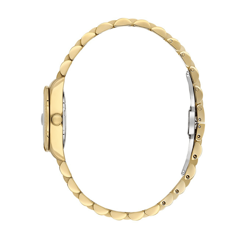 Bu model, TOMJ.3.10029.02 stok koduna sahip Kadın Saat kategorisinde yer almakta olup, modern çizgilere sahip tasarımıyla dikkat çekmektedir.