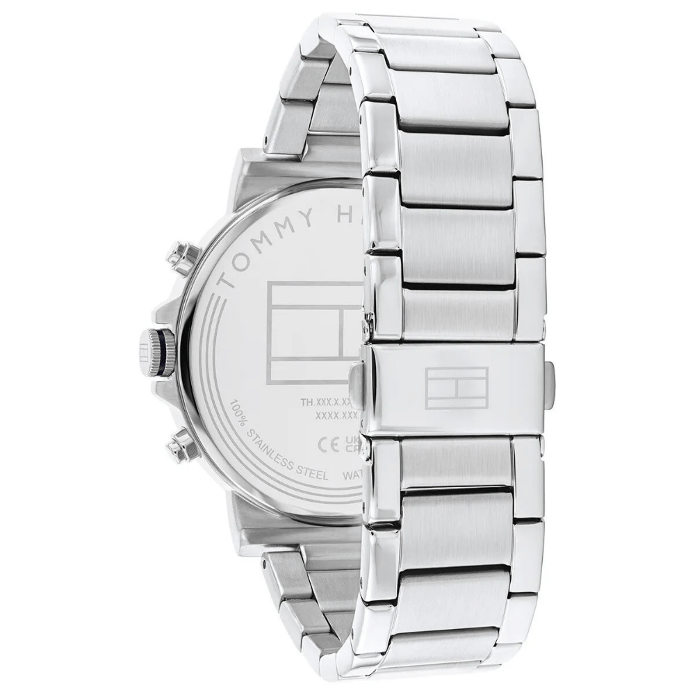 Tommy Hilfiger erkek kol saati, 44 mm çapında ve 10 mm kalınlığında paslanmaz çelik kasasıyla sportif ve modern bir tarz sunar. Metalik gri kasa ve aynı tondaki çelik kordon, saatin güçlü duruşunu tamamlar. Lacivert renkteki analog kadranı, sofistike detaylarla sade şıklığı bir araya getirirken, Quartz mekanizması zamanı hassas ve güvenilir biçimde sunar. Mineral cam yapısı sayesinde çizilmelere karşı dayanıklıdır ve uzun ömürlü kullanım sağlar. 22 mm genişliğindeki çelik kordon, bilekte dengeli bir duruş sunarken, 135 gr ağırlığı ile sağlamlık hissini artırır. 5 ATM su geçirmezlik seviyesi sayesinde günlük su temaslarına karşı koruma sağlar. Takvim ve 24 saat/gün fonksiyonlarıyla donatılmış bu model, dinamik yaşam stiline uyum sağlayan, fonksiyonel ve şık bir seçenek arayan erkekler için idealdir.