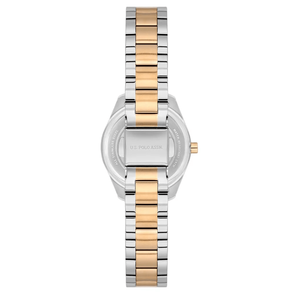 Zarif detaylarıyla dikkat çeken U.S. Polo Assn. Kadın Saat, klasik tasarımı modern dokunuşlarla buluşturarak şıklığınıza sofistike bir hava katıyor. Güvenilir Quartz mekanizması ile zamanı hassas ölçen bu model, 2 yıl garanti güvencesiyle sunuluyor. 70 gr ağırlığındaki saat, hafif yapısıyla konforlu bir kullanım sağlarken, metalik gri çelik kasası (28 mm çap, 8 mm kalınlık) ve üzerinde yer alan taş detayları ile zarif bir ışıltı sunuyor. Dayanıklı mineral camı uzun ömürlü kullanım sağlarken, modern bir görünüm kazandıran yeşil analog kadranı ile farklı bir tarz ortaya koyuyor. Altın rengi ve metalik gri çelik kordonu (18 cm uzunluk, 12 x 12 mm genişlik) bileğe kusursuz uyum sağlayarak şıklığı tamamlıyor. Günlük kullanıma uygun olan bu model, 5 ATM su geçirmezlik özelliği sayesinde güvenle tercih edilebilir. Estetik ve modern detaylarıyla bu saat, stil sahibi kadınların gardırobunda vazgeçilmez bir aksesuar olacak.