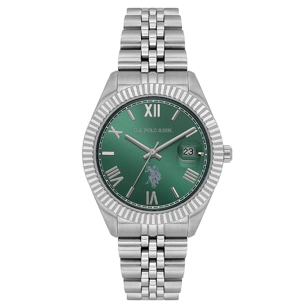 Zarif ve modern çizgileriyle öne çıkan U.S. Polo Assn. Kadın Saat, hem şıklığı hem de işlevselliği bir arada sunuyor. Güvenilir Quartz mekanizması ile zamanı hassas ölçen bu model, 2 yıl garanti güvencesiyle sunuluyor. 90 gr ağırlığındaki saat, bilekte dengeli bir kullanım sağlarken, metalik gri çelik kasası (36 mm çap, 10 mm kalınlık) ve mineral camı ile dayanıklılığı artırıyor. Yuvarlak kasa formu, dikkat çekici yeşil analog kadran ile birleşerek modern ve sofistike bir görünüm kazandırıyor. Metalik gri çelik kordonu (19 cm uzunluk, 14 x 18 mm genişlik) bileğe rahatça uyum sağlarken, şık bir duruş sergiliyor. Günlük kullanıma uygun olan bu model, 5 ATM su geçirmezlik özelliği ile güvenli kullanım sunarken, pratik takvim fonksiyonu ile de fonksiyonelliğini ön plana çıkarıyor. Estetik ve kullanışlı detaylarıyla bu saat, zamansız şıklık arayan kadınların vazgeçilmez aksesuarı olacak.