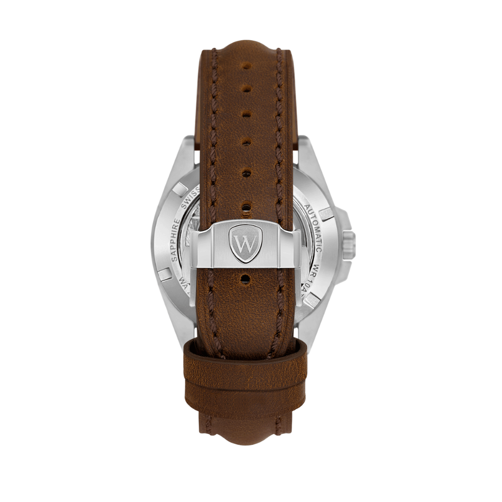 Wainer Swiss Made erkek kol saati, prestijli detayları ve güçlü yapısıyla öne çıkar. DP 26 mekanizması ile çalışan model, otomatik çalışma tipi sayesinde kurma gerektirmeden enerji üretir ve 72 saat power reserve özelliği ile uzun süreli kullanım sağlar. 41 mm çapındaki çelik kasa, zarif ölçüleriyle bileğe uyum sağlarken safir cam sayesinde çizilmelere karşı yüksek dayanıklılık sunar. Koyu kahverengi deri kayışı, klasik ve şık bir görünüm kazandırırken günlük kullanımda konfor sağlar. Ayrıca 10 ATM su geçirmezlik özelliği sayesinde suya karşı dayanıklıdır ve güvenle kullanılabilir.