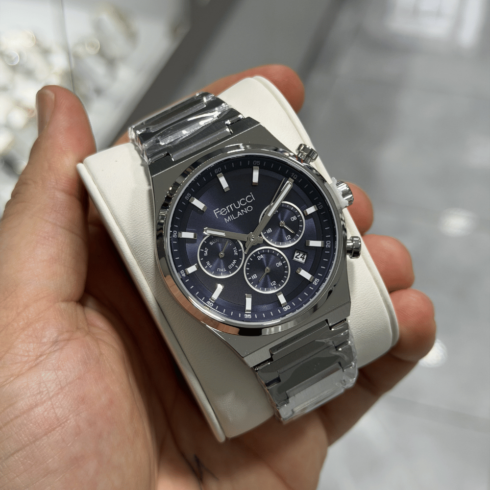 Ferrucci koleksiyonunda yer alan bu erkek saati, çelik, metalik gri kasa gövdesiyle klasik ve uzun ömürlü bir estetik sunar. 43 mm kasa çapı, quartz mekanizma ve mineral cam kombinasyonu; saati her koşulda güvenilir kılar. 3 ATM su geçirmezlik ile günlük su temasları artık endişe kaynağı olmaktan çıkar. çelik kordon, metalik gri ise tamamlayan tasarımda 2 Yıl garanti desteği, klasik çizgileri ve güçlü teknik yapısıyla zamanın ötesine geçen bir seçimdir.