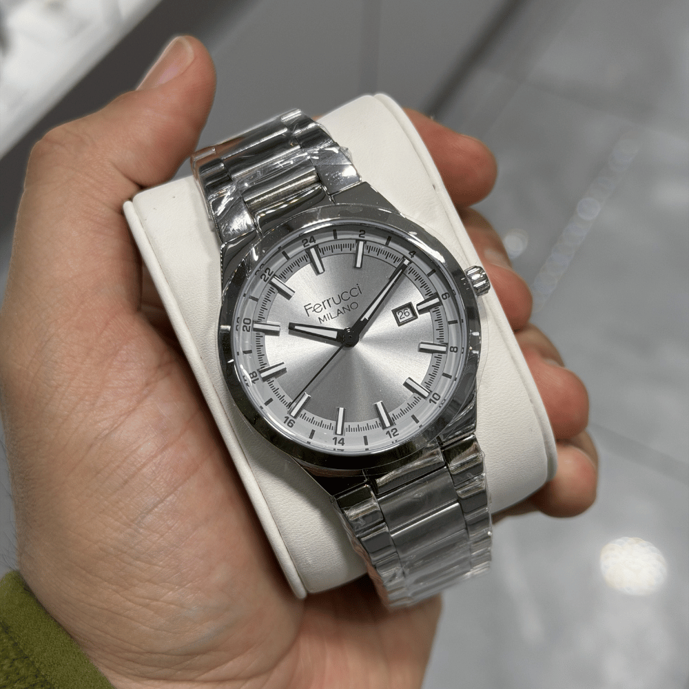 Ferrucci serisinin bu erkek saati, çelik, metalik gri kasa ve 42 mm kasa çapıyla bilekte güçlü bir iz bırakır. quartz mekanizma, mineral cam ile birleşerek teknik güvenilirliği ve uzun ömürlü kullanımı garanti eder. 3 ATM su geçirmezlik derecesiyle yağmur ve nem endişesini ortadan kaldırır. çelik kordon, metalik gri ise hem klasik görünümünü tamamlar hem de günlük konfor sağlar. 2 Yıl garanti güvencesiyle sunulan bu model, iş hayatından günlük yaşama uzanan geniş kullanım yelpazesiyle fark yaratır.