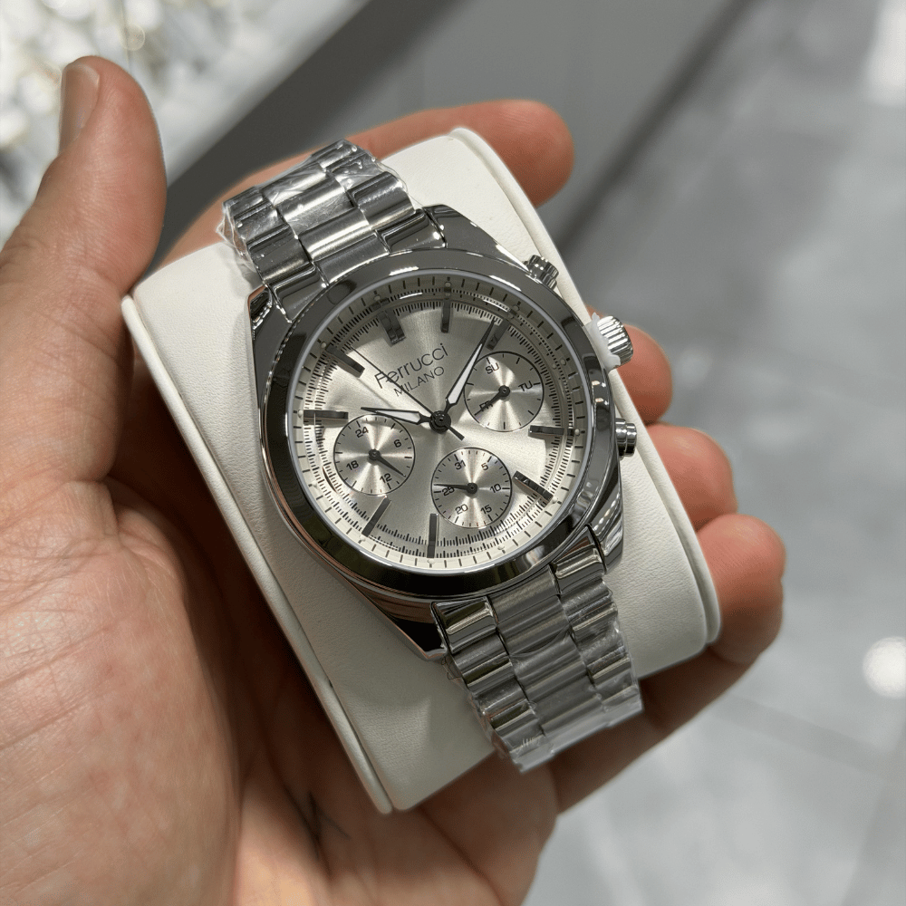 Sağlam yapısı ve kararlı duruşuyla Ferrucci imzalı bu erkek kol saatinde çelik, metalik gri kasa kullanılmıştır. 43 mm kasa çapı bileğe baskın ve güçlü bir görünüm sunarken quartz mekanizma, mineral cam ile birlikte uzun süreli güvenilirlik sağlar. 3 ATM su geçirmezlik değeriyle aktif kullanımda da güvenle tercih edilebilir. çelik kordon, metalik gri ise ile tamamlanan tasarım, 2 Yıl garanti güvencesiyle birlikte hem günlük kullanımda hem de özel anlarda güvenle tercih edilebilecek bir erkek saatidir.