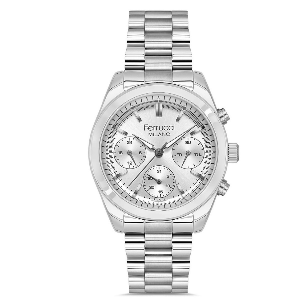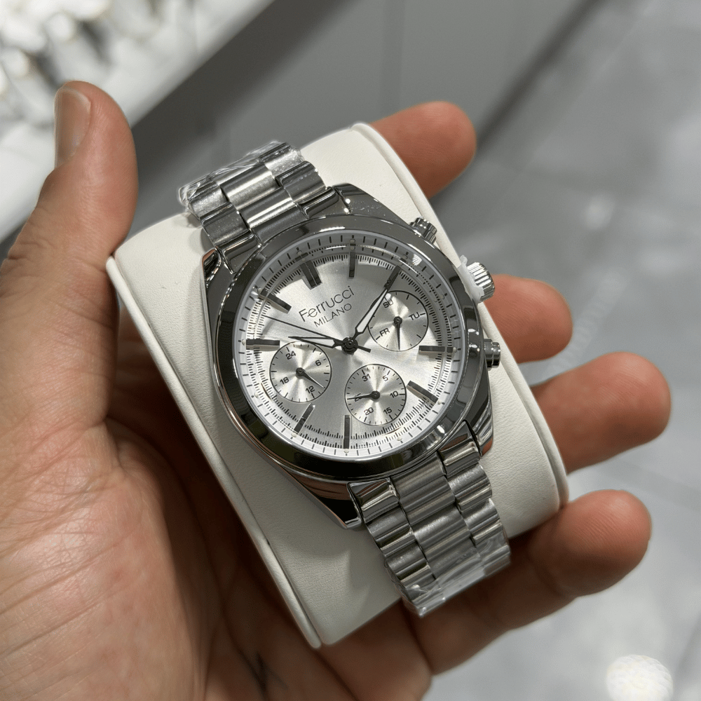 Zamanı güçlü bir şekilde taşımak isteyenler için Ferrucci serisi bu erkek kol saatini önerir. çelik, metalik gri kasa ile üretilen 43 mm kasa, quartz mekanizma ve mineral cam kombinasyonuyla güvenilir bir teknik yapı oluşturur. 3 ATM su geçirmezlik özelliği aktif yaşam tarzına uygundur. çelik kordon, metalik gri ise destekli tasarım, 2 Yıl garanti güvencesiyle modern erkeğin bileğine yakışan güçlü ve kaliteli bir seçimdir.
