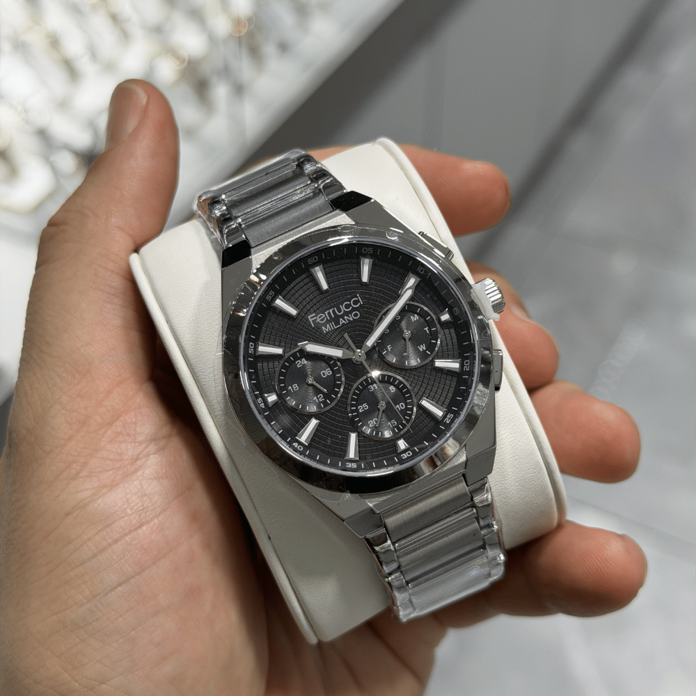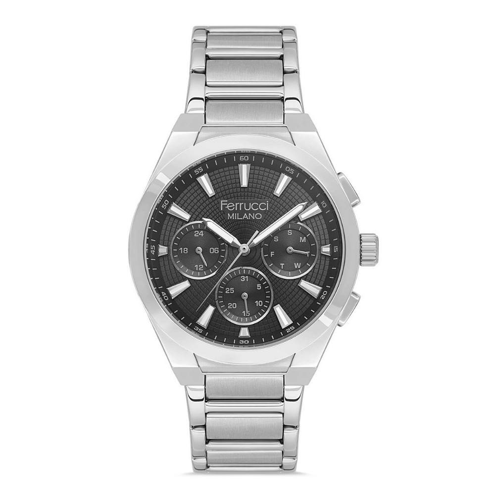 Ferrucci serisinin bu erkek saati, çelik, metalik gri kasa ve 43 mm kasa çapıyla bilekte güçlü bir iz bırakır. quartz mekanizma, mineral cam ile birleşerek teknik güvenilirliği ve uzun ömürlü kullanımı garanti eder. 3 ATM su geçirmezlik derecesiyle yağmur ve nem endişesini ortadan kaldırır. çelik kordon, metalik gri ise hem klasik görünümünü tamamlar hem de günlük konfor sağlar. 2 Yıl garanti güvencesiyle sunulan bu model, klasik çizgileri ve güçlü teknik yapısıyla zamanın ötesine geçen bir seçimdir.