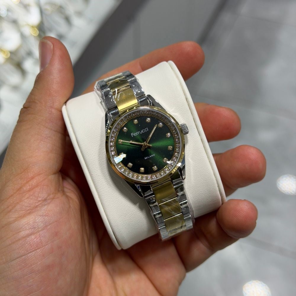 Ferrucci serisinin bu kadın saati, çelik, i̇ki renk kasa ve 30 mm kasa çapıyla her kombini tamamlayan şık bir aksesuar olarak öne çıkar. quartz mekanizma ve mineral cam, saatin günlük kullanımda hem işlevsel hem de dayanıklı kalmasını sağlar. 3 ATM su geçirmezlik değeri rutinin her anında güvenli kullanım sunar. çelik kordon, i̇ki renk ise seçimiyle tamamlanan zarif tasarım, 2 Yıl garanti güvencesiyle şık çizgileri ve kaliteli detaylarıyla koleksiyonunuzun vazgeçilmezi olacaktır.