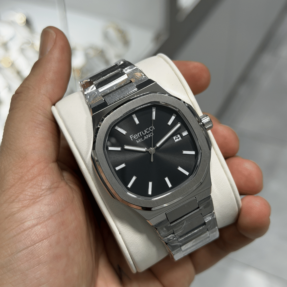 Ferrucci koleksiyonunda yer alan bu erkek saati, çelik, metalik gri kasa gövdesiyle klasik ve uzun ömürlü bir estetik sunar. 40 mm kasa çapı, quartz mekanizma ve mineral cam kombinasyonu; saati her koşulda güvenilir kılar. 3 ATM su geçirmezlik ile günlük su temasları artık endişe kaynağı olmaktan çıkar. çelik kordon, metalik gri ise tamamlayan tasarımda 2 Yıl garanti desteği, klasik çizgileri ve güçlü teknik yapısıyla zamanın ötesine geçen bir seçimdir.