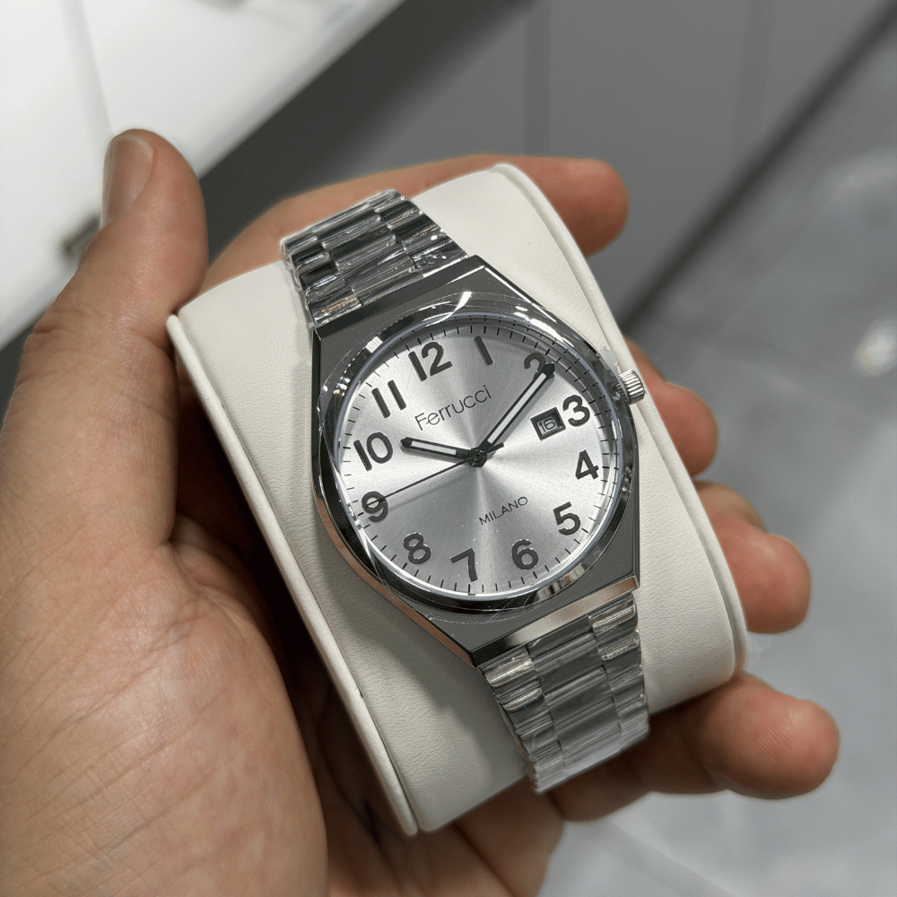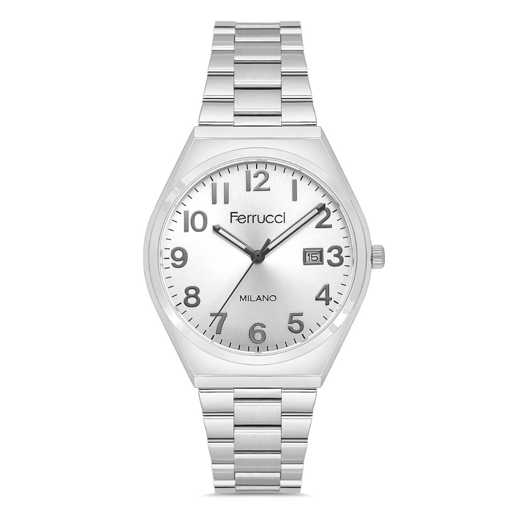 Ferrucci koleksiyonunda yer alan bu erkek saati, çelik, metalik gri kasa gövdesiyle klasik ve uzun ömürlü bir estetik sunar. 40 mm kasa çapı, quartz mekanizma ve mineral cam kombinasyonu; saati her koşulda güvenilir kılar. 3 ATM su geçirmezlik ile günlük su temasları artık endişe kaynağı olmaktan çıkar. çelik kordon, metalik gri ise tamamlayan tasarımda 2 Yıl garanti desteği, klasik çizgileri ve güçlü teknik yapısıyla zamanın ötesine geçen bir seçimdir.