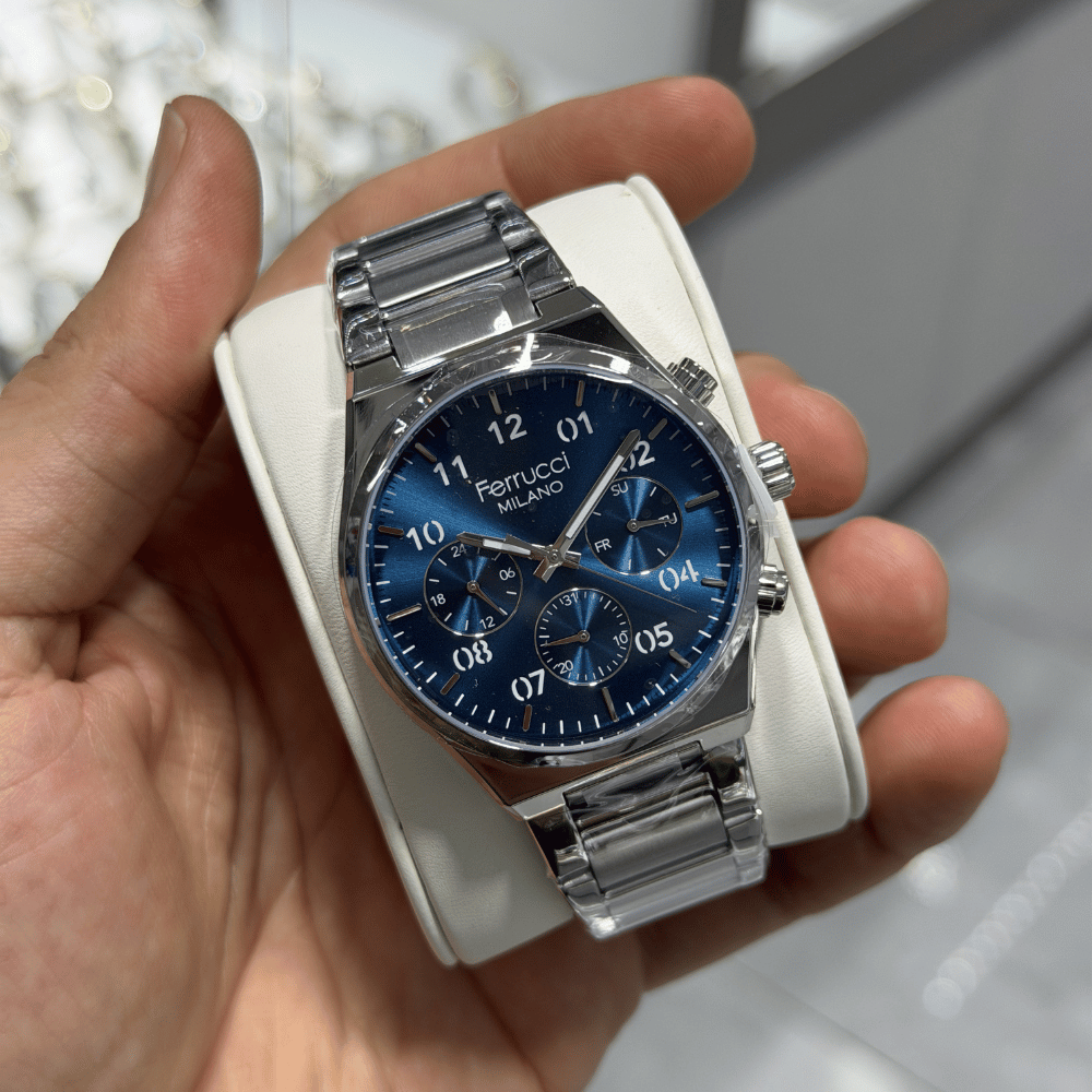 Ferrucci koleksiyonunda yer alan bu erkek saati, çelik, metalik gri kasa gövdesiyle klasik ve uzun ömürlü bir estetik sunar. 43 mm kasa çapı, quartz mekanizma ve mineral cam kombinasyonu; saati her koşulda güvenilir kılar. 3 ATM su geçirmezlik ile günlük su temasları artık endişe kaynağı olmaktan çıkar. çelik kordon, metalik gri ise tamamlayan tasarımda 2 Yıl garanti desteği, sağlam yapısı ve şık görünümüyle her tarza kolayca uyum sağlar.