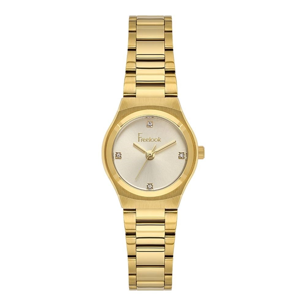 Freelook kadın kol saati, çelik, altın kasa ve 25 mm kasa çapıyla bileğe feminen ve modern bir dokunuş katar. quartz mekanizma ve mineral cam ile donatılan model, uzun süreli kullanımda güvenilirdir. 5 ATM su geçirmezlik değeri ekstra koruma sağlar. çelik kordon, altın seçimi şıklığa işlevsellik katarken 2 Yıl garanti ile satış sonrası destek de tamam. hem günlük hem de özel kombinlerde tarzınızı tamamlayacak zarif bir seçimdir.
