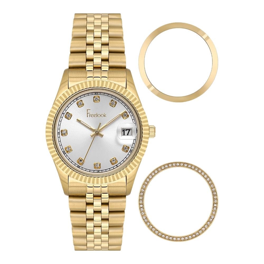 Freelook koleksiyonundan bu kadın kol saati, çelik, altın kasa ile ince ve zarif bir silüet çizer. quartz mekanizma ile çalışan model, mineral cam korumasıyla her gün yenisi gibi parlak kalır. 5 ATM su geçirmezlik özelliği günlük yaşamın her anında güvence sağlar. 36 mm kasa çapı bileğe orantılı ve feminen bir dokunuş katar. çelik kordon, altın, zarafeti tasarımın her ayrıntısında tamamlar. Metalik Gri kadran rengi şık bir görsel bütünlük oluşturur. 2 Yıl garanti ile desteklenen bu model, sade zarafeti ve kalitesiyle her özel ana eşlik edecek bir modeldir.