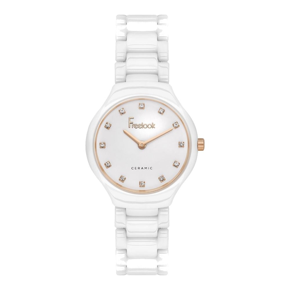 Freelook serisinin bu kadın saati, seramik, beyaz kasa ve 30 mm kasa çapıyla her kombini tamamlayan şık bir aksesuar olarak öne çıkar. quartz mekanizma ve mineral cam, saatin günlük kullanımda hem işlevsel hem de dayanıklı kalmasını sağlar. 3 ATM su geçirmezlik değeri rutinin her anında güvenli kullanım sunar. seramik kordon, beyaz seçimi zarif tasarımı tamamlarken işlevselliği de göz ardı etmez. Beyaz kadran rengi modele özgün bir kişilik katar. 2 Yıl garanti güvencesiyle günlük şıklığı ve uzun ömürlü kullanımı bir arada arayan kadınlar için idealdir.