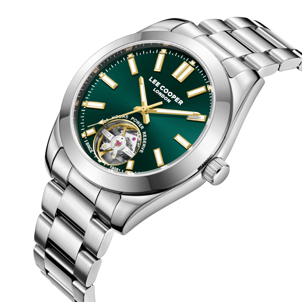 Lee Cooper’ın modern tasarım çizgisini taşıyan bu erkek kol saati, 43mm metal kasa, yeşil kadran ve gümüş renkli metal bilezik ile şık bir görünüm sunar. Saatin otomatik mekanizması, tam kurulumda 66 saat güç rezervi sağlayarak uzun süreli kullanım konforu sunar. Özel mineral cam darbe ve çizilmelere karşı dayanıklılık sağlarken, güvenli kilit mekanizması bilekte sağlam tutuş sunar. Model, günlük kullanıma uygun 5 ATM (50 metre) su geçirmezlik özelliğine sahiptir. Yuvarlak kasa formu, orta boy (43 mm) kadran ölçüsü ve zarif detaylarıyla her stile uyum sağlar. Ürün, resmi distribütör garantisi kapsamında 2 yıl garanti ile sunulmaktadır.