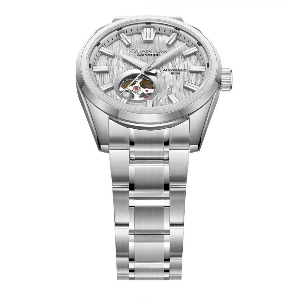 Zarif siyah kadranı ve dikkat çekici tasarımıyla öne çıkan Quantum otomatik kol saati, modern stilin güçlü ve sade bir yansımasıdır. 41 mm kasa çapı ile bilekte dengeli ve iddialı bir duruş sunan bu model, günlük kullanımda hem şıklığı hem de sağlamlığı bir arada sunar. Paslanmaz çelik kasa ve gri renkli çelik bilezik, saatin sofistike ve zamansız çizgilerini tamamlar. Safir cam, çizilmelere karşı yüksek dayanıklılık sağlarken, yansıma önleyici kaplama ile her açıdan net bir görüş imkânı sunar. Gümüş kadranı, yalın ve şık detaylarıyla dikkat çekerken, sade tasarımıyla hem klasik hem de modern giyim stilleriyle uyum sağlar. Otomatik mekanizması, kol hareketiyle kendini sararak pile ihtiyaç duymadan enerji üretir. 10 ATM (100 metre) su geçirmezlik seviyesi, günlük su temaslarına ve yüzmeye karşı güvenli kullanım sunar. Şıklık, dayanıklılık ve teknik üstünlüğü bir araya getiren Quantum otomatik saat, stil sahibi kullanıcılar için ideal bir tercihtir.
