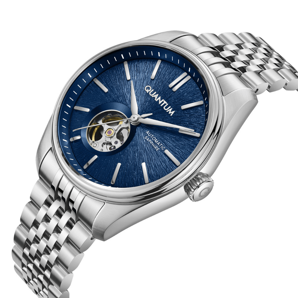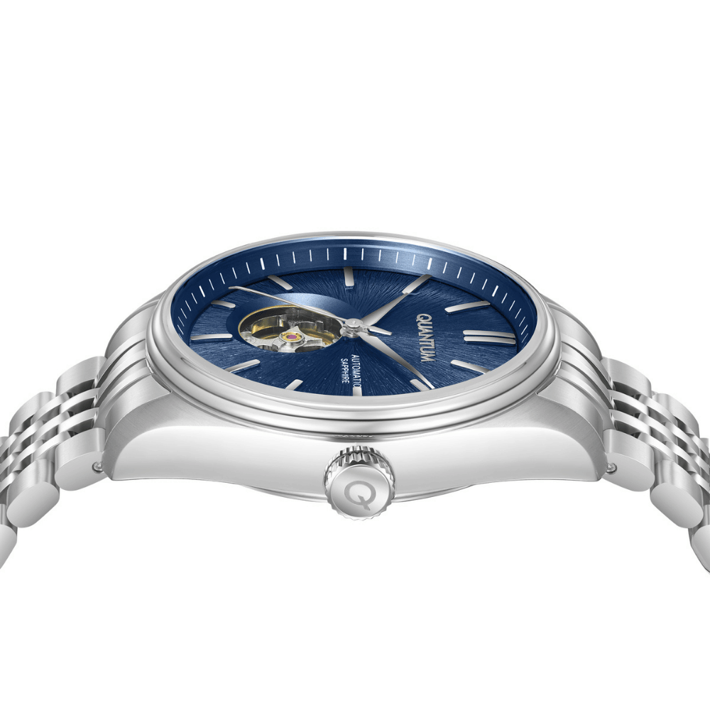 Zarif siyah kadranı ve dikkat çekici tasarımıyla öne çıkan Quantum otomatik kol saati, modern stilin güçlü ve sade bir yansımasıdır. 41 mm kasa çapı ile bilekte dengeli ve iddialı bir duruş sunan bu model, günlük kullanımda hem şıklığı hem de sağlamlığı bir arada sunar. Paslanmaz çelik kasa ve gri renkli çelik bilezik, saatin sofistike ve zamansız çizgilerini tamamlar. Mineral cam, çizilmelere karşı yüksek dayanıklılık sağlarken, yansıma önleyici kaplama ile her açıdan net bir görüş imkânı sunar. Lacivert kadranı, yalın ve şık detaylarıyla dikkat çekerken, sade tasarımıyla hem klasik hem de modern giyim stilleriyle uyum sağlar. Otomatik mekanizması, kol hareketiyle kendini sararak pile ihtiyaç duymadan enerji üretir. 10 ATM (100 metre) su geçirmezlik seviyesi, günlük su temaslarına ve yüzmeye karşı güvenli kullanım sunar. Şıklık, dayanıklılık ve teknik üstünlüğü bir araya getiren Quantum otomatik saat, stil sahibi kullanıcılar için ideal bir tercihtir.