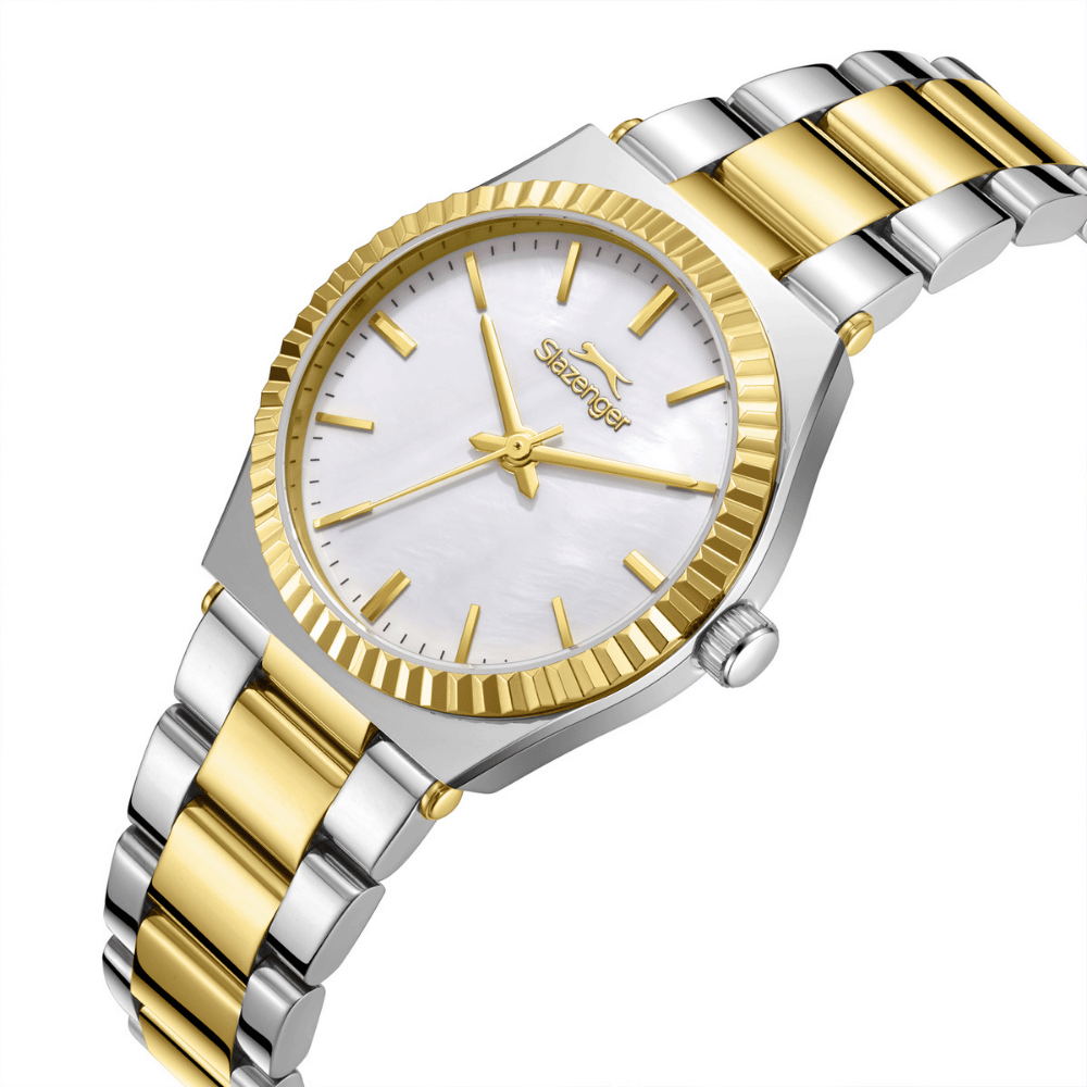 Slazenger serisinin bu kadın saati, çelik, i̇ki renk kasa ve 32 mm kasa çapıyla her kombini tamamlayan şık bir aksesuar olarak öne çıkar. quartz mekanizma ve mineral cam, saatin günlük kullanımda hem işlevsel hem de dayanıklı kalmasını sağlar. 5 ATM su geçirmezlik değeri rutinin her anında güvenli kullanım sunar. çelik kordon, i̇ki renk seçimiyle tamamlanan zarif tasarım, 2 Yıl garanti güvencesiyle hem günlük hem de özel kombinlerde tarzınızı tamamlayacak zarif bir seçimdir.