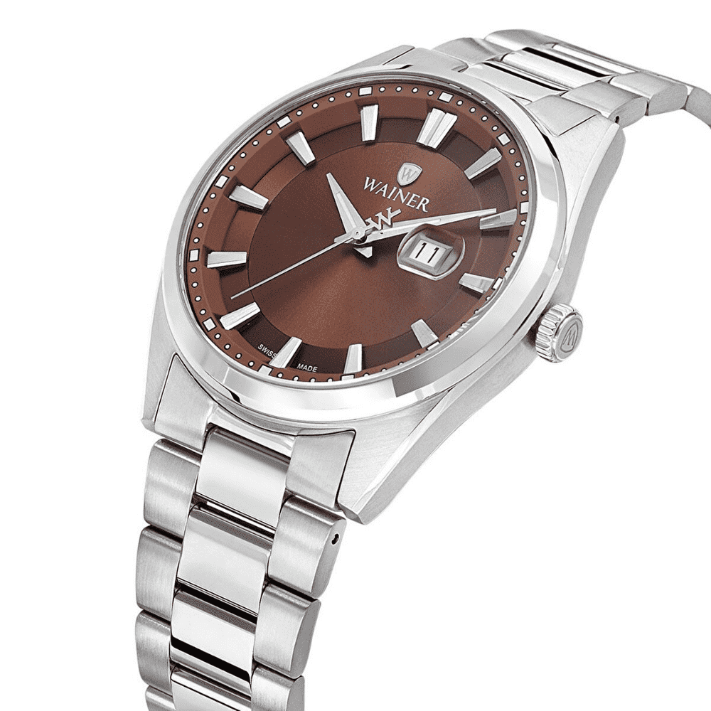 Wainer marka bu şık kol saati, İsviçre menşeli Quartz mekanizması ile hassas zaman tutuşu sunar. 41 mm çapında ve yalnızca 7,85 mm kalınlığındaki paslanmaz çelik kasası, modern bir görünüm sağlarken, seramik safir kaplamalı camı çizilmelere karşı ekstra dayanıklılık kazandırır. Kahve kadranı ve silver renkli kasa-kordon uyumu, zarif bir stil sunar. Takvim fonksiyonu, günlük kullanım kolaylığı sağlarken, 5 ATM su geçirmezlik özelliğiyle sıçramalara karşı koruma sağlar. Saat, ayrıca 2 yıl garantilidir.