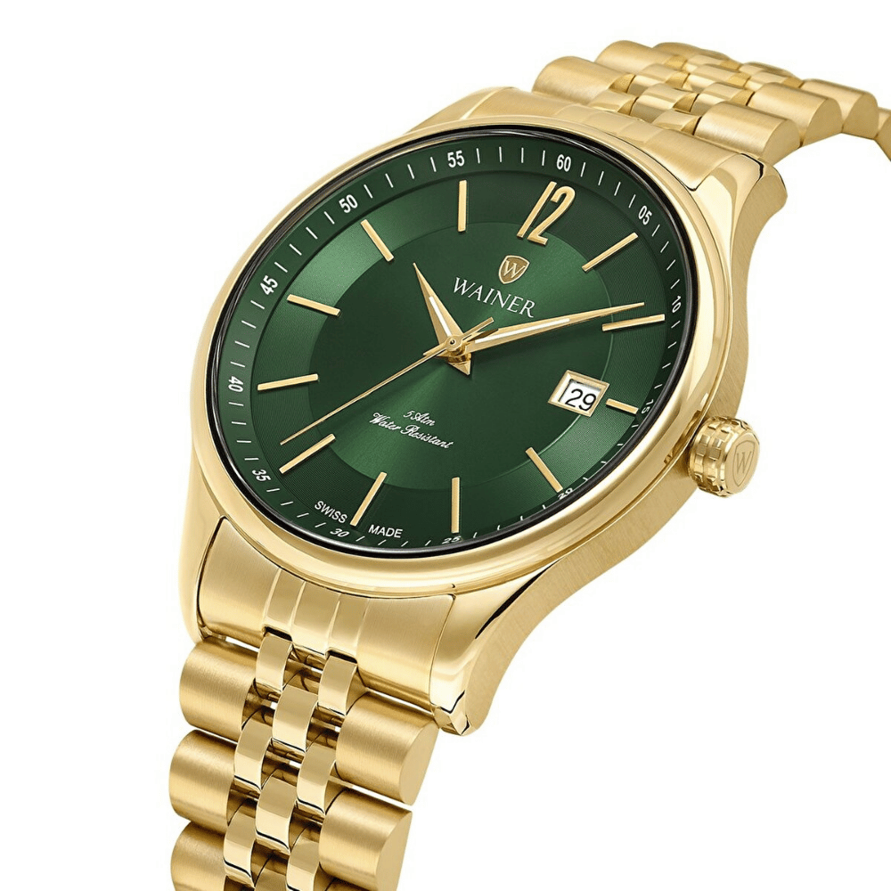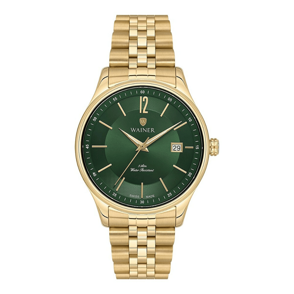 Wainer marka bu şık kol saati, İsviçre menşeli Quartz mekanizması ile hassas zaman tutuşu sunar. 40 mm çapında ve yalnızca 7,85 mm kalınlığındaki paslanmaz çelik kasası, modern bir görünüm sağlarken, seramik safir kaplamalı camı çizilmelere karşı ekstra dayanıklılık kazandırır. Yeşil kadranı ve silver renkli kasa-kordon uyumu, zarif bir stil sunar. Takvim fonksiyonu, günlük kullanım kolaylığı sağlarken, 5 ATM su geçirmezlik özelliğiyle sıçramalara karşı koruma sağlar. Saat, ayrıca 2 yıl garantilidir.